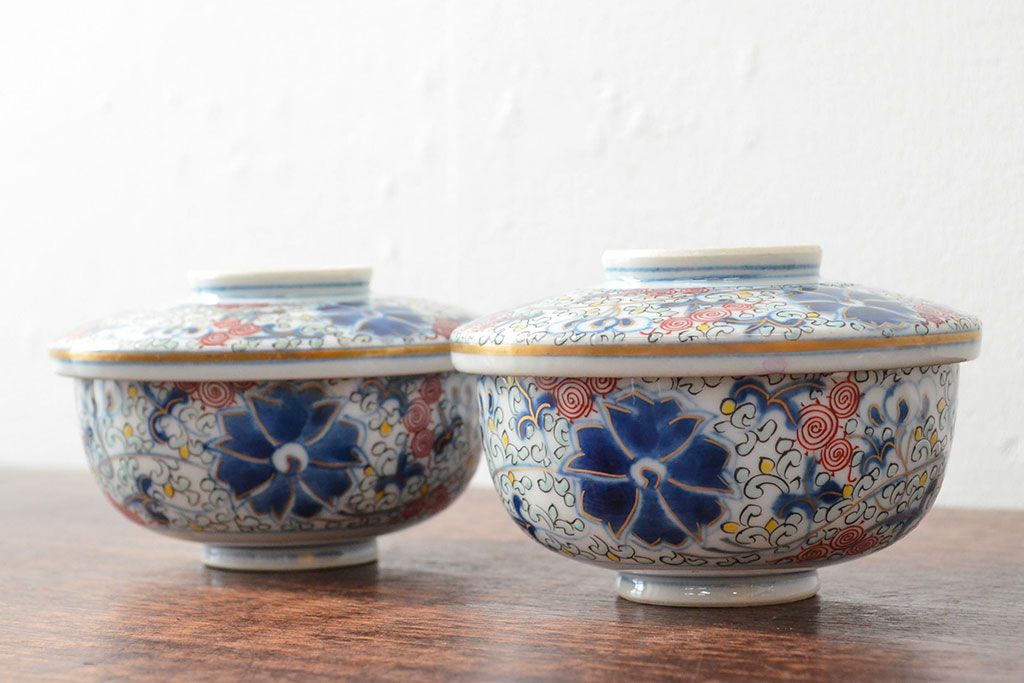 ラフジュ工房> 和食器・茶道具> お椀・茶碗 > 大清光緒年製 色絵染付蓋茶碗2客セット(伊万里、中国?)(R-052048)