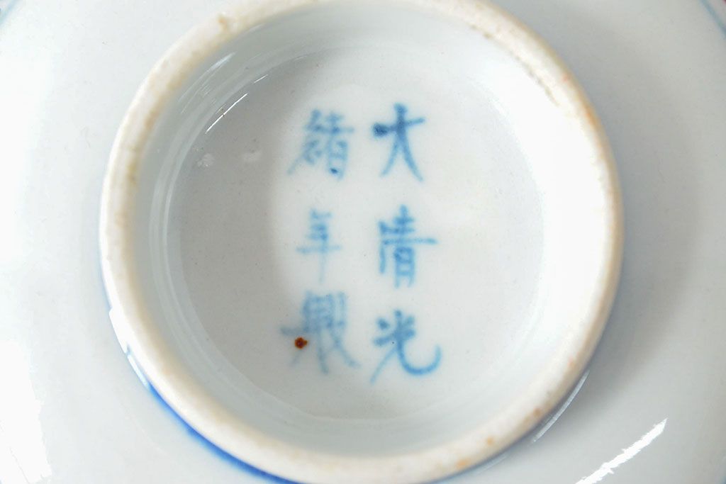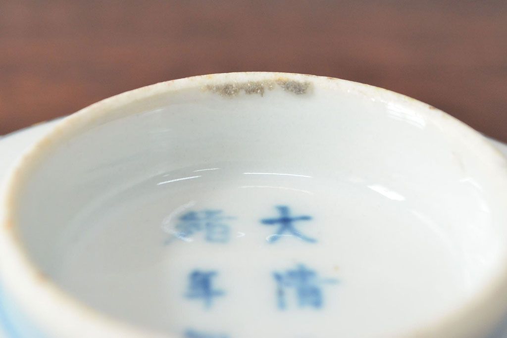 大清光緒年製 色絵染付蓋茶碗2客セット(伊万里、中国?)(R-052048)
