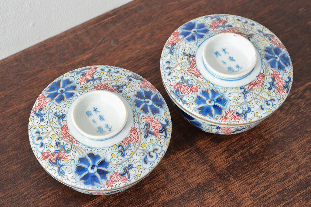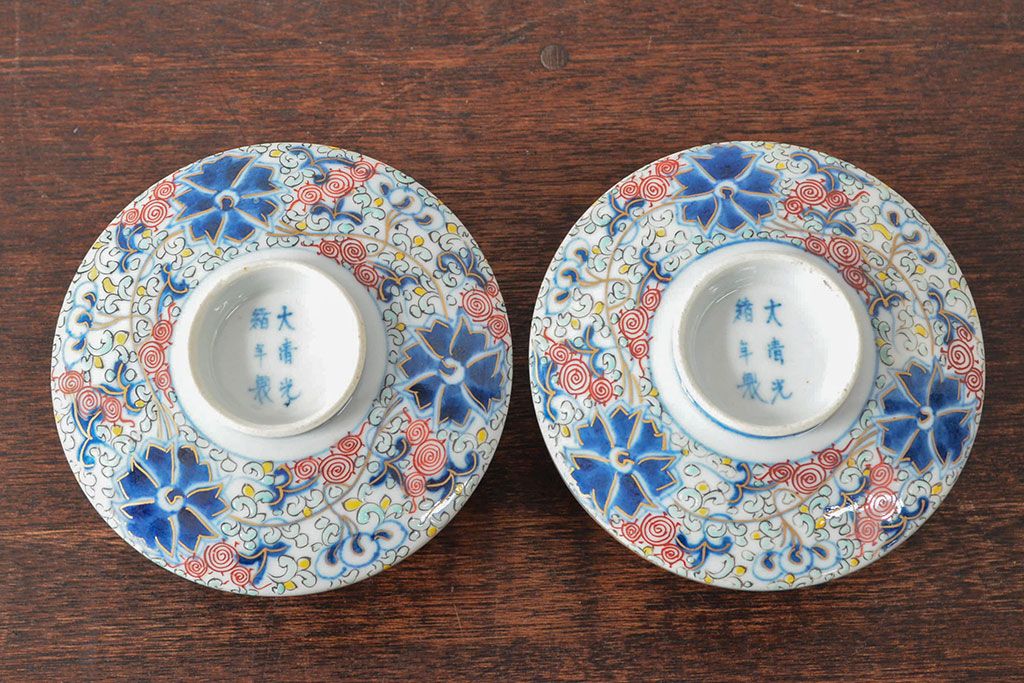 ラフジュ工房> 骨董・美術品> 中国美術 > 大清光緒年製 色絵染付蓋茶碗2客セット(伊万里、中国?)(R-052049)