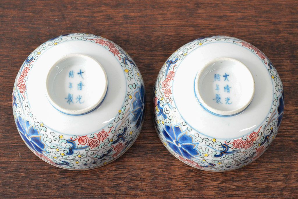 ラフジュ工房> 和食器・茶道具> お椀・茶碗 > 大清光緒年製 色絵染付蓋茶碗2客セット(伊万里、中国?)(R-052049)