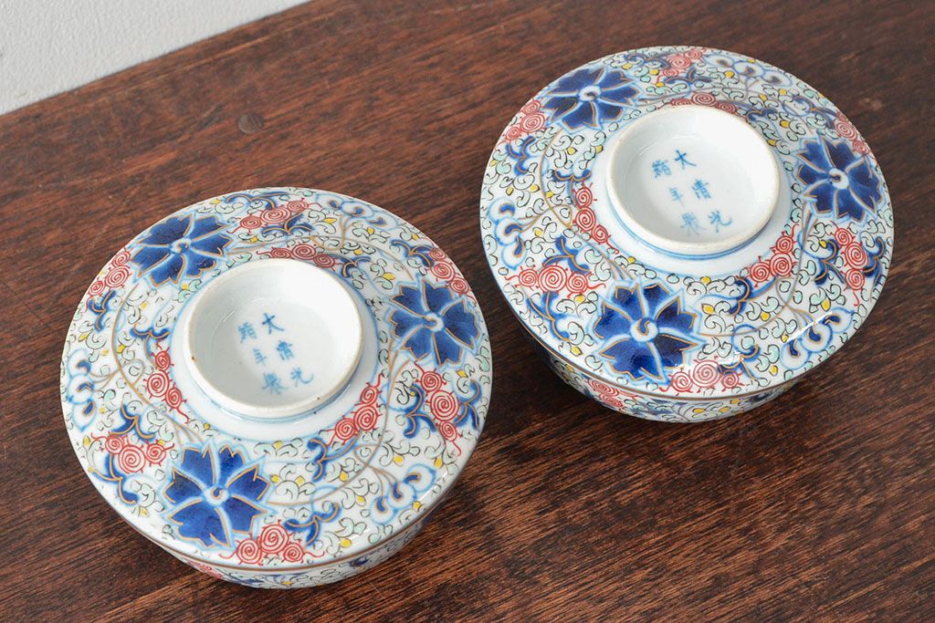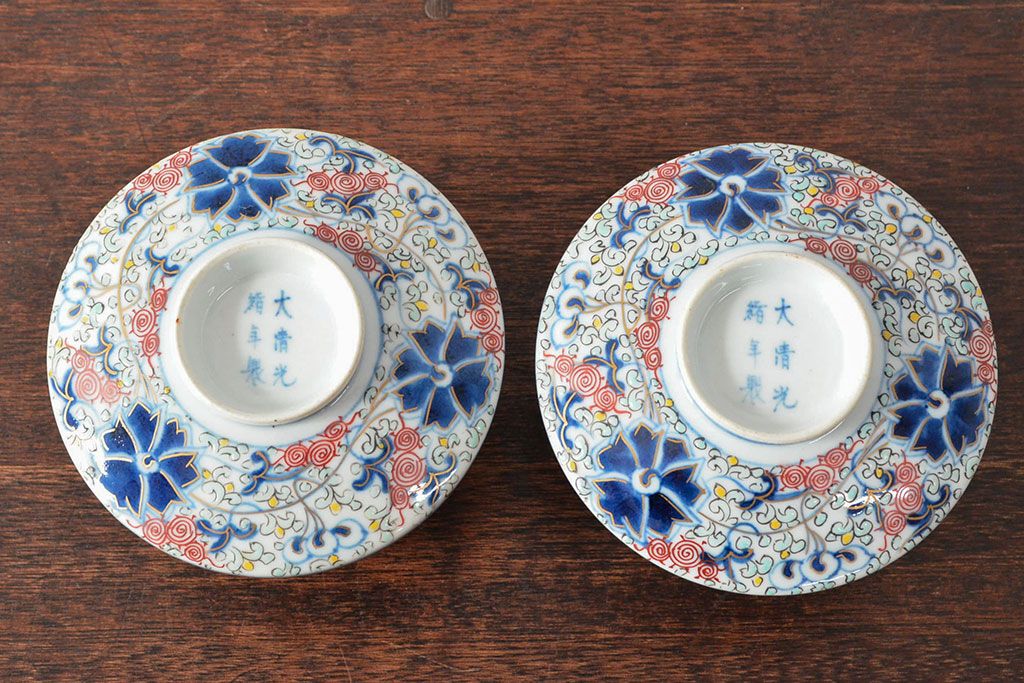 ラフジュ工房> 骨董・美術品> 中国美術 > 大清光緒年製 色絵染付蓋茶碗2客セット(伊万里、中国?)(R-052051)
