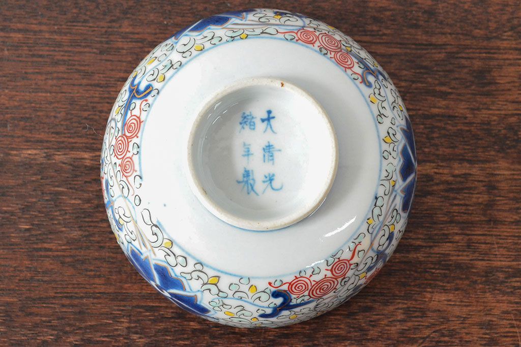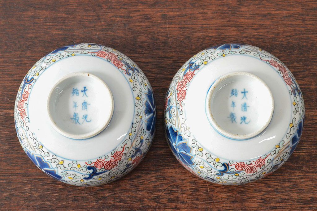 ラフジュ工房> 和食器・茶道具> お椀・茶碗 > 大清光緒年製 色絵染付蓋茶碗2客セット(伊万里、中国?)(R-052051)