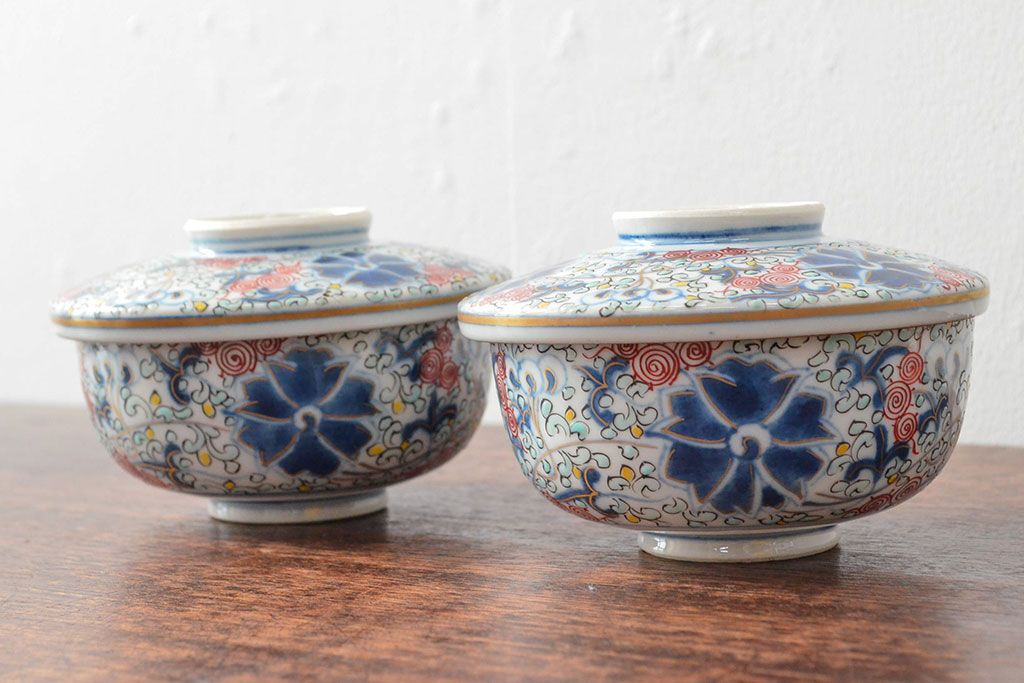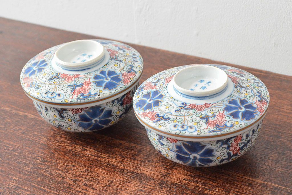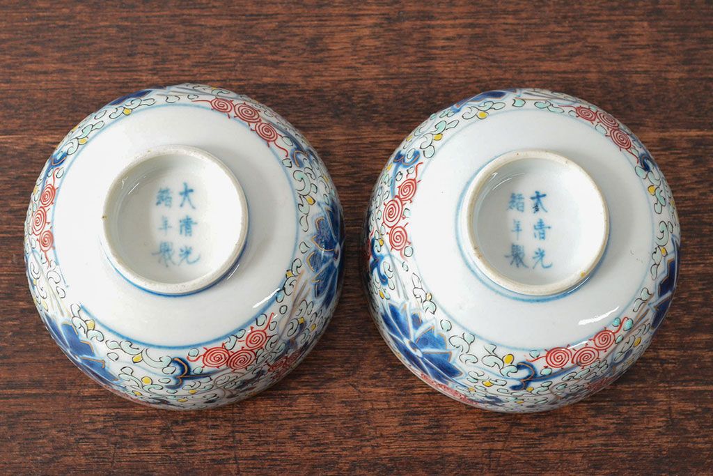 ラフジュ工房> 和食器・茶道具> お椀・茶碗 > 大清光緒年製 色絵染付蓋茶碗2客セット(伊万里、中国?)(R-052052)