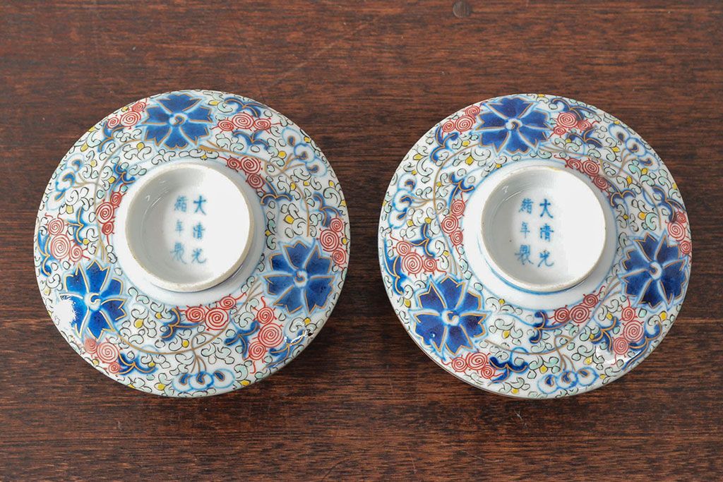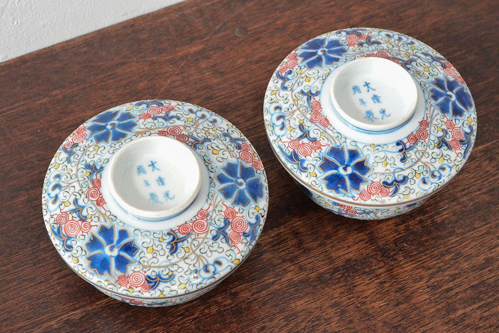 ラフジュ工房> 骨董・美術品> 中国美術 > 大清光緒年製 色絵染付蓋茶碗2客セット(伊万里、中国?)(R-052052)