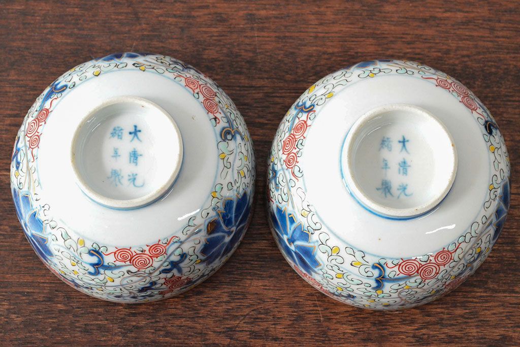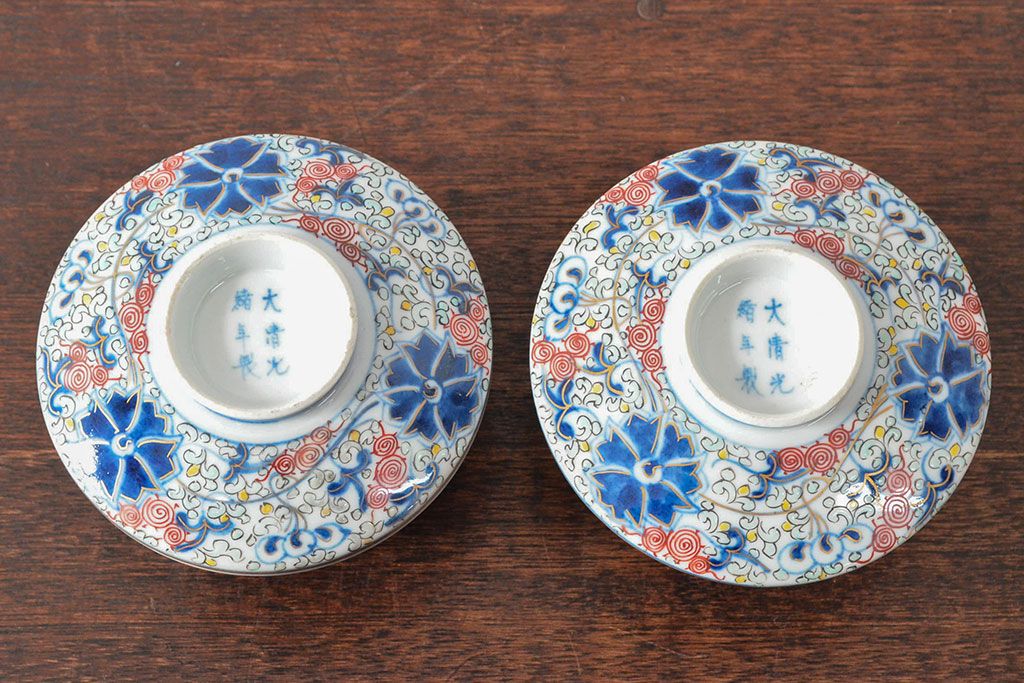 ラフジュ工房> 骨董・美術品> 中国美術 > 大清光緒年製 色絵染付蓋茶碗2客セット(伊万里、中国?)(R-052053)