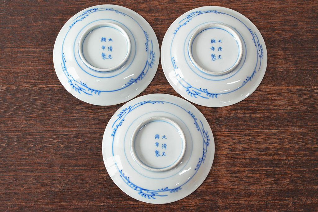 ラフジュ工房> 和食器・茶道具> 皿 > 大清光緒年製 色絵染付 四寸皿3枚(伊万里、中国?)(R-052192)