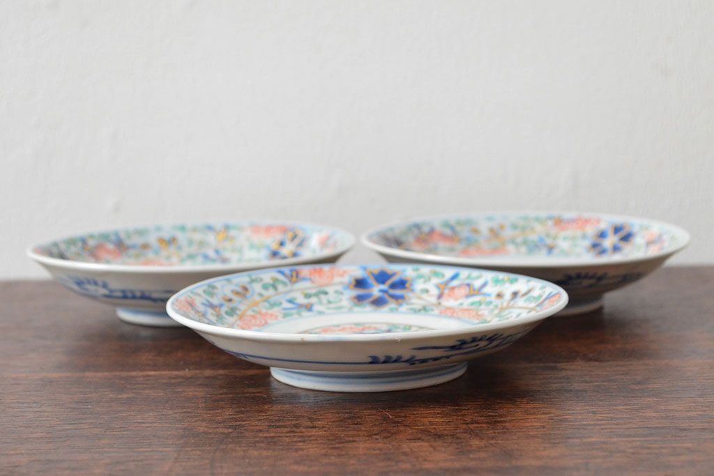 ラフジュ工房> 骨董・美術品> 中国美術 > 大清光緒年製 色絵染付 四寸皿3枚(伊万里、中国?)(R-052195)