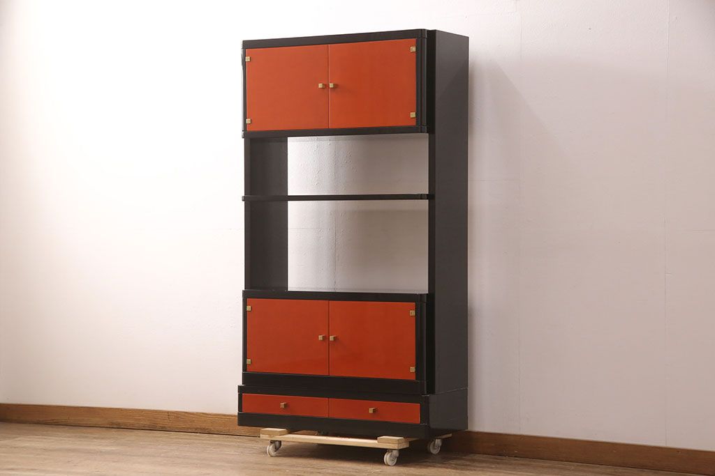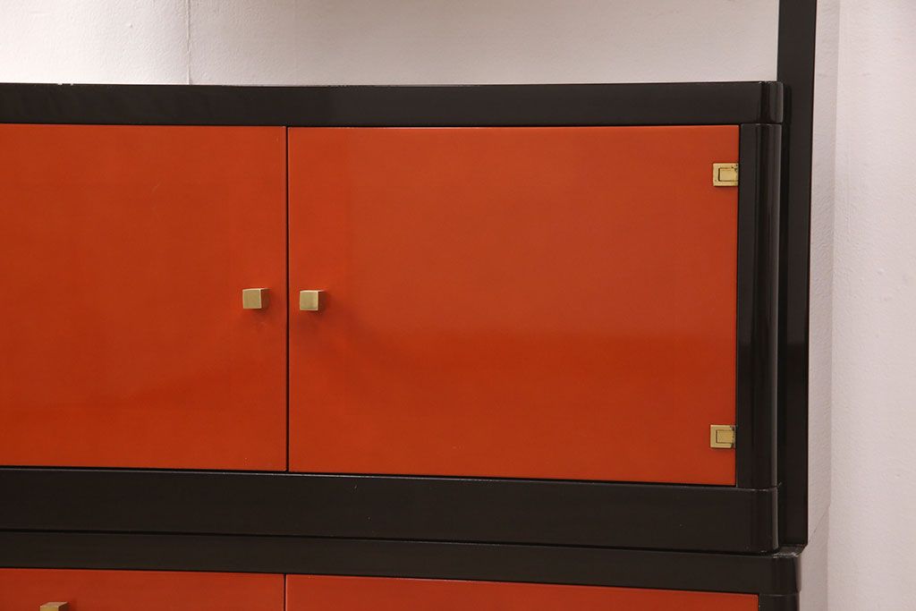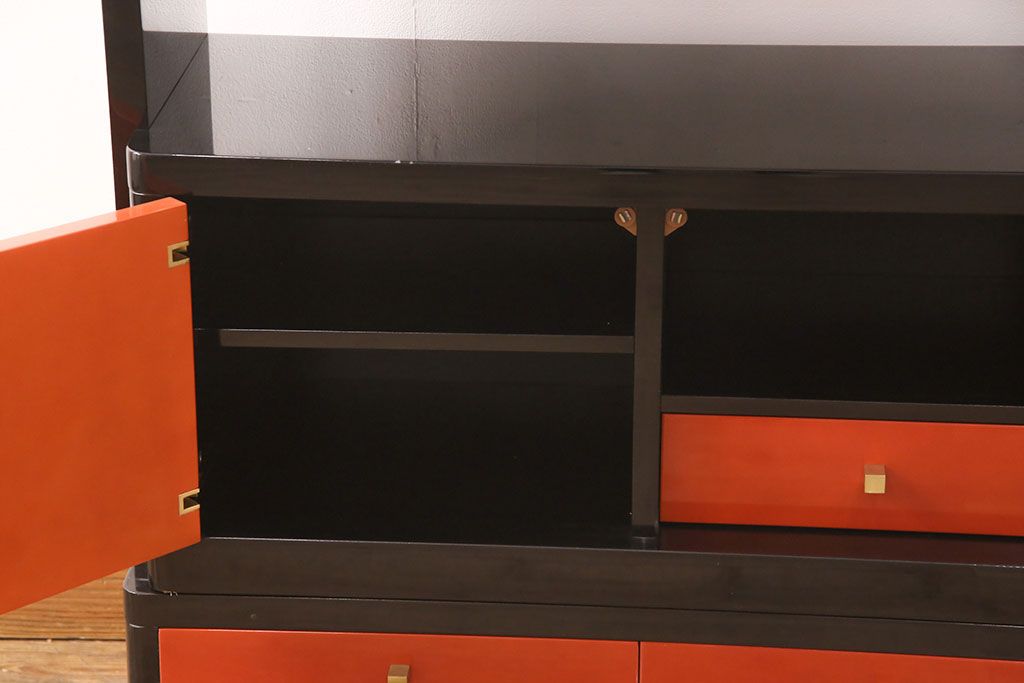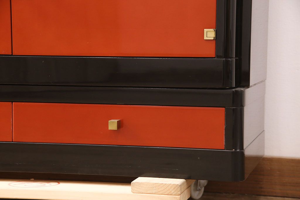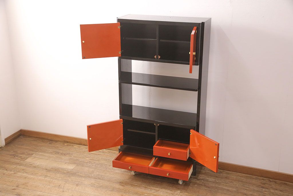 和製ビンテージ 国産工芸家具 総漆塗り 朱と黒のコントラストが美しいモダンキャビネット(収納棚、戸棚)(R-052309)です。