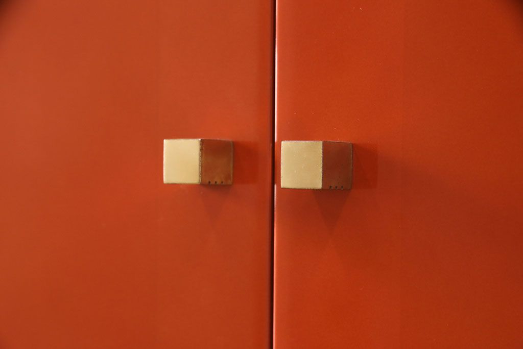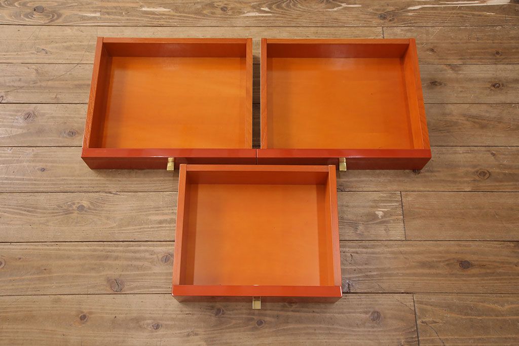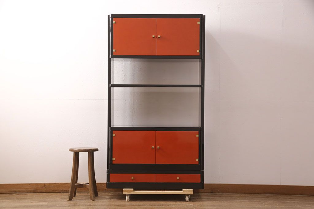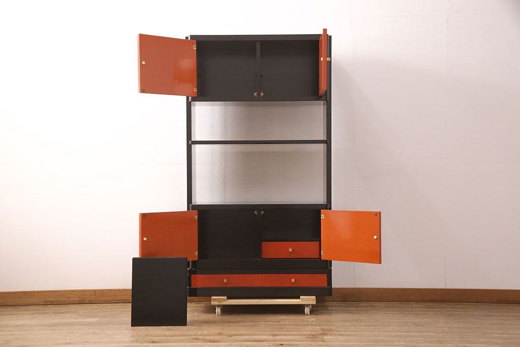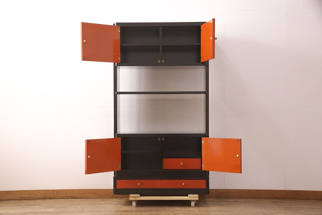 和製ビンテージ 国産工芸家具 総漆塗り 朱と黒のコントラストが美しいモダンキャビネット(収納棚、戸棚)(R-052309)です。