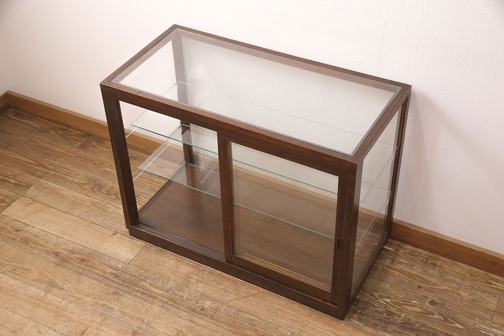 ガラスケースの見た目を変えずに綺麗にリペア!底板は新材に張り直し。(ショーケース、陳列棚、飾り棚)
