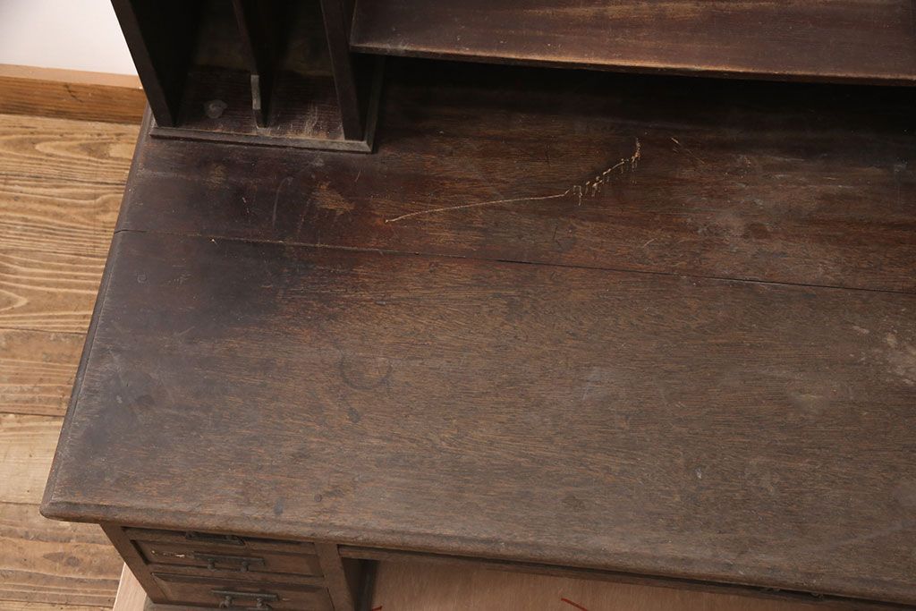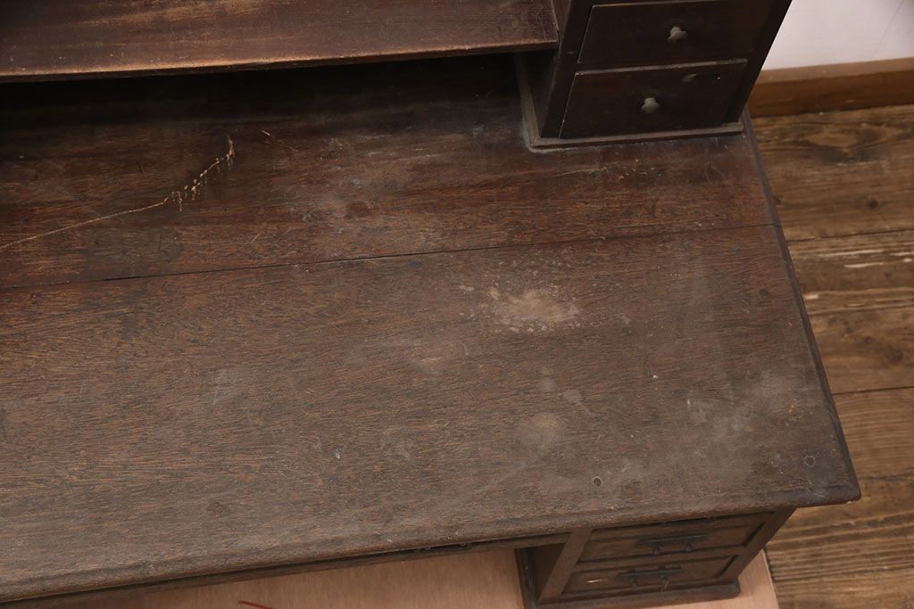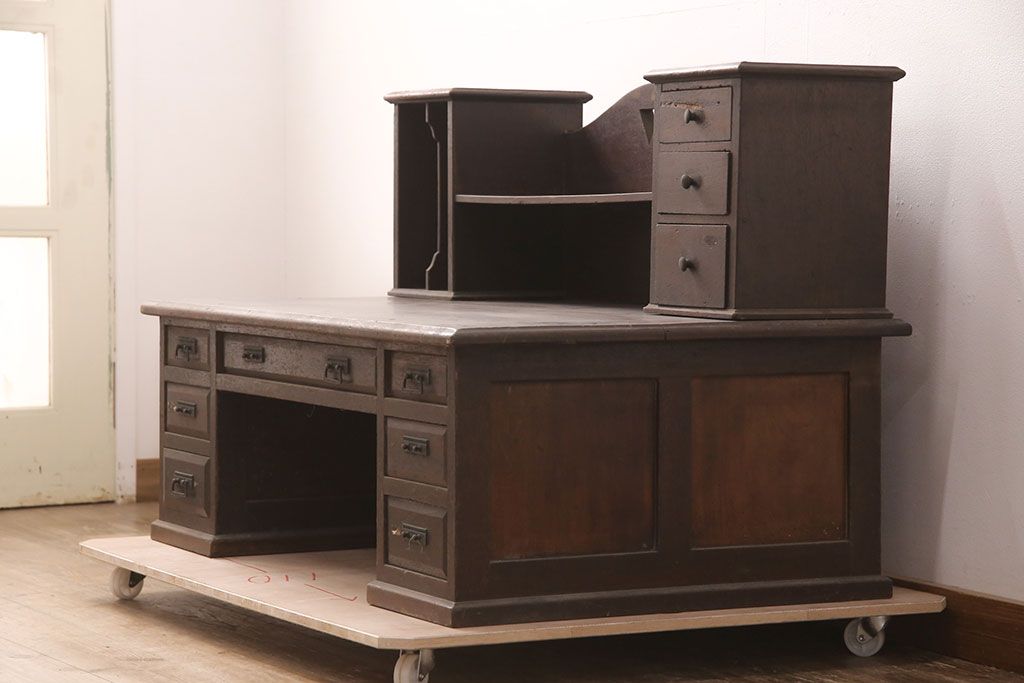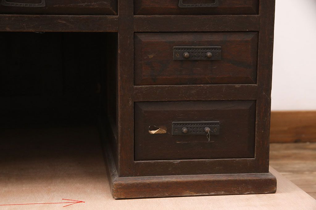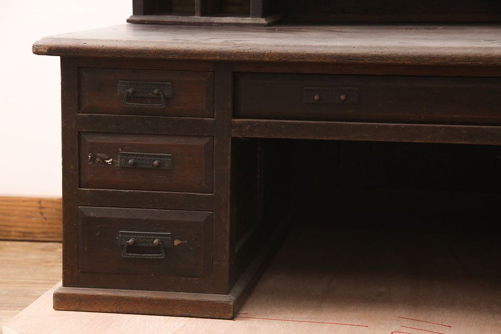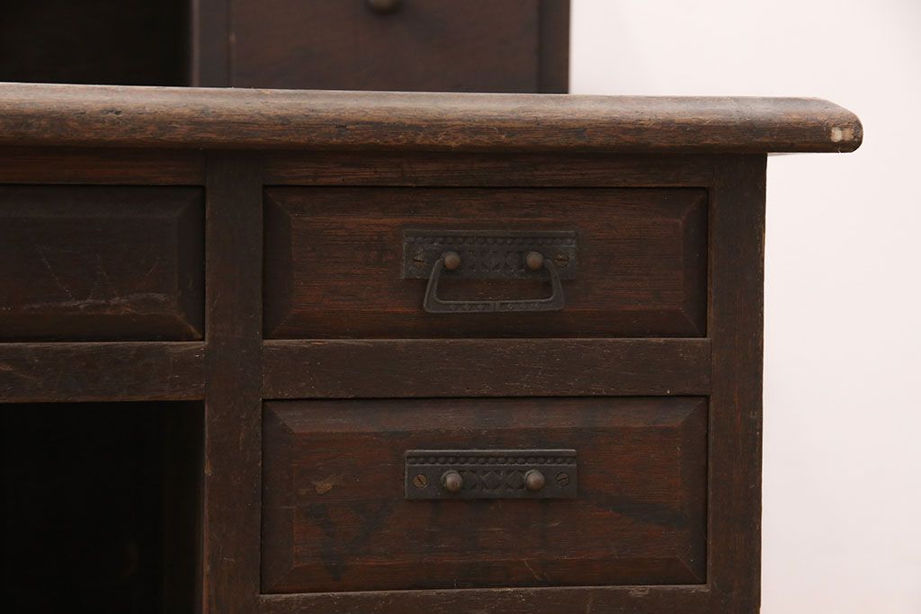 和製アンティーク 細々したものもすっきりまとめられる、収納付き帳場机(簿記机、在宅用ライティングビューロー、両袖机、在宅ワーク、在宅用文机、在宅用デスク)(R-052353)
