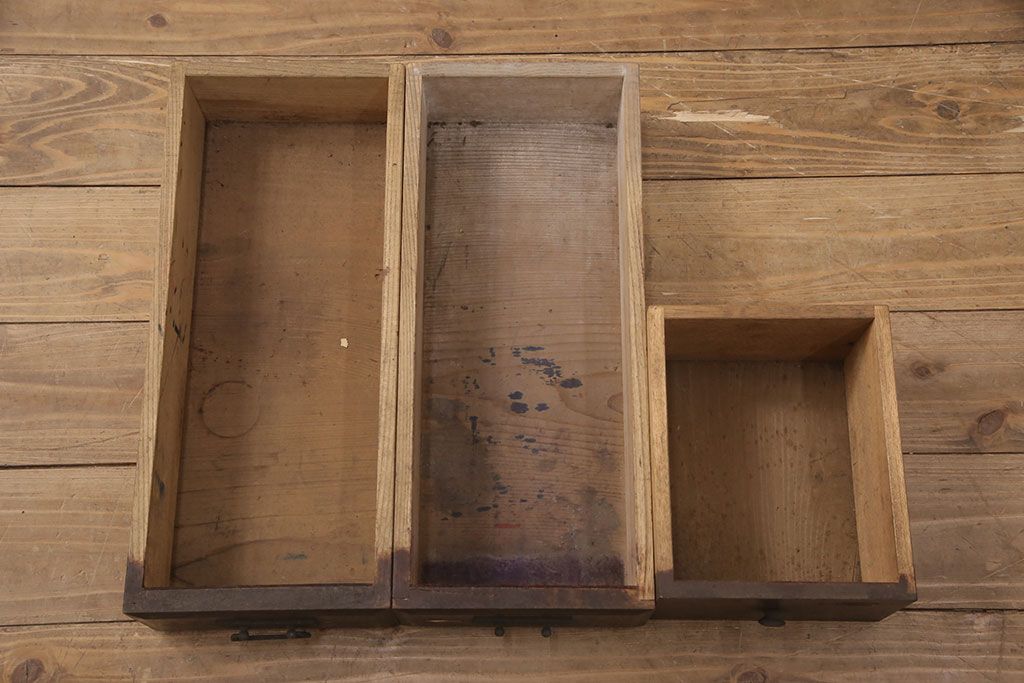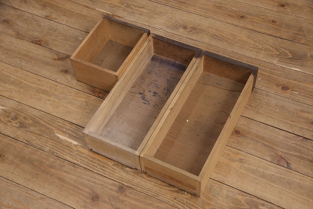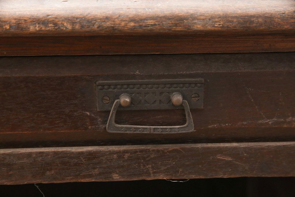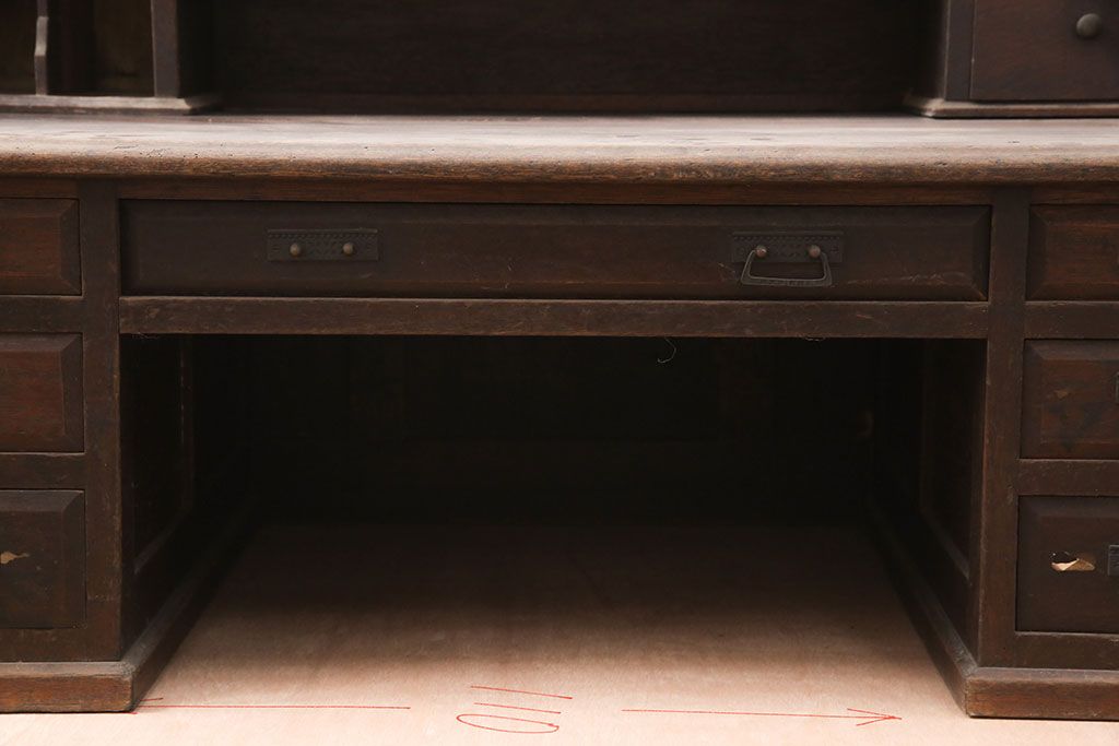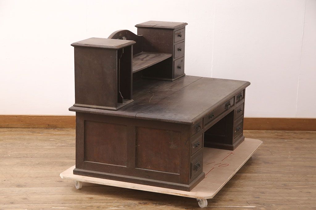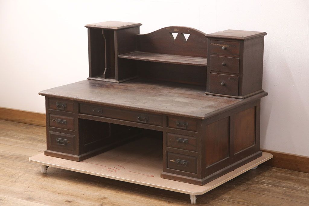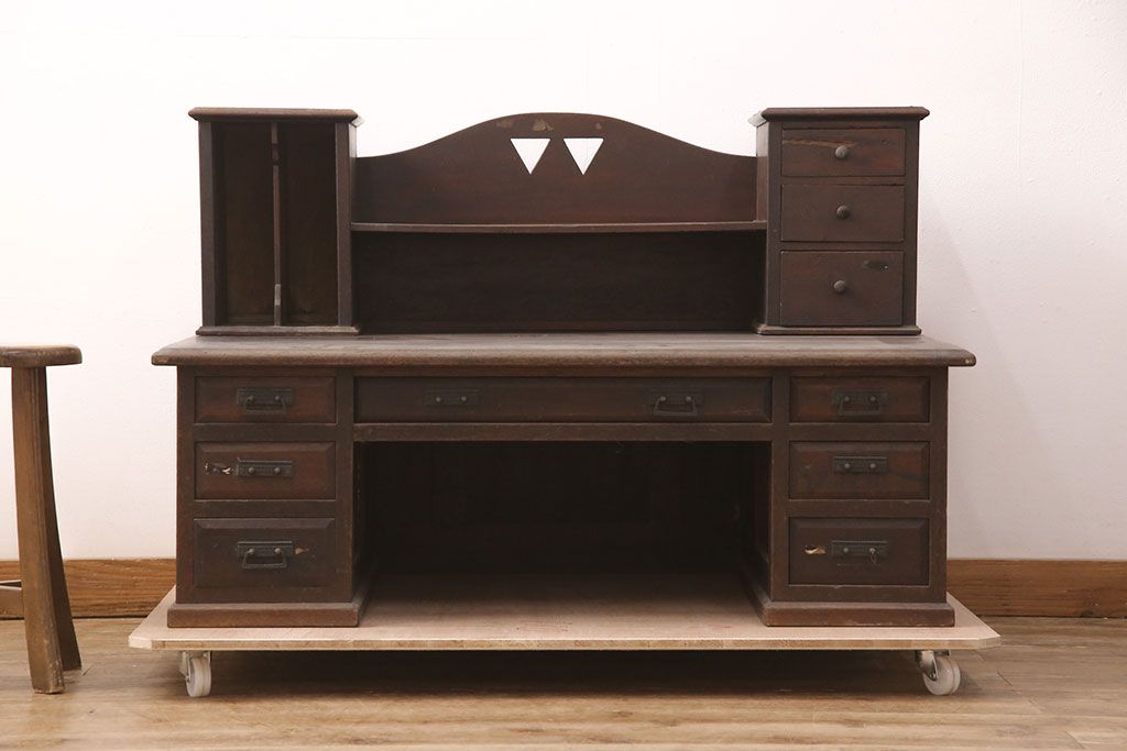 和製アンティーク 細々したものもすっきりまとめられる、収納付き帳場机(簿記机、在宅用ライティングビューロー、両袖机、在宅ワーク、在宅用文机、在宅用デスク)(R-052353)