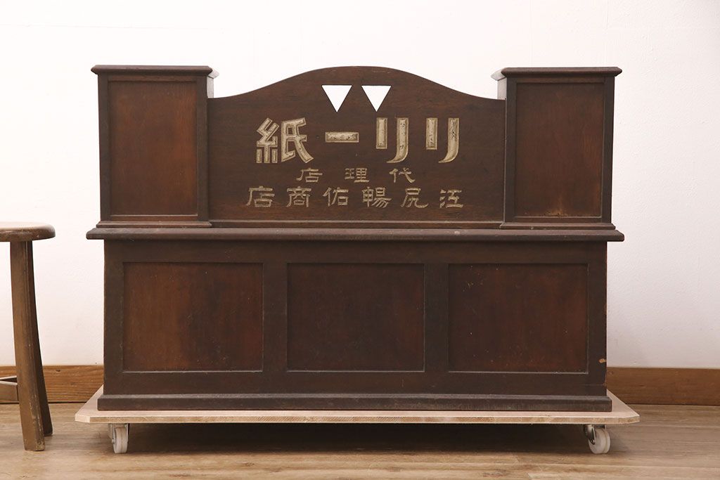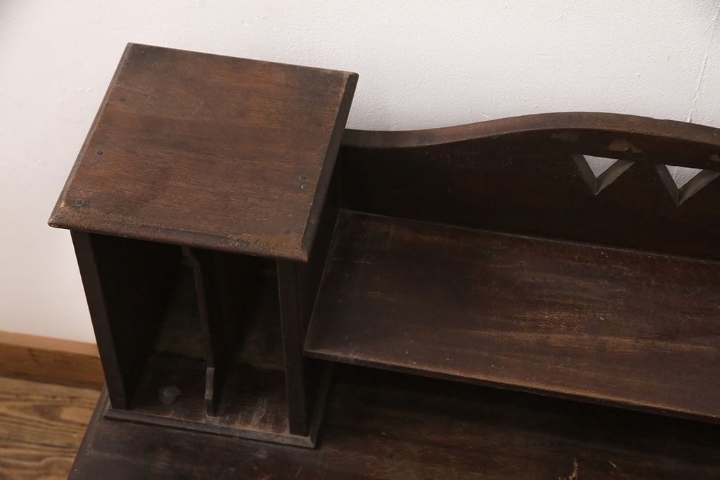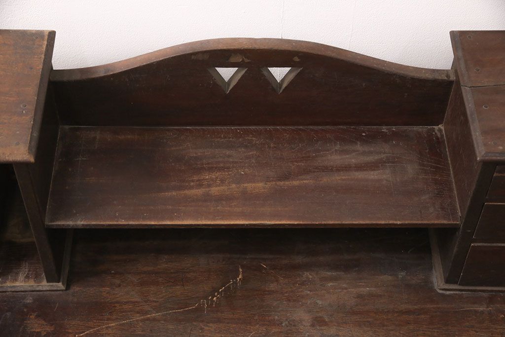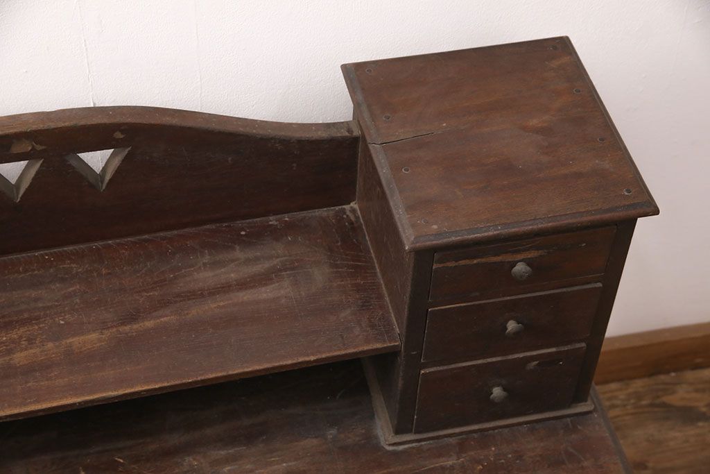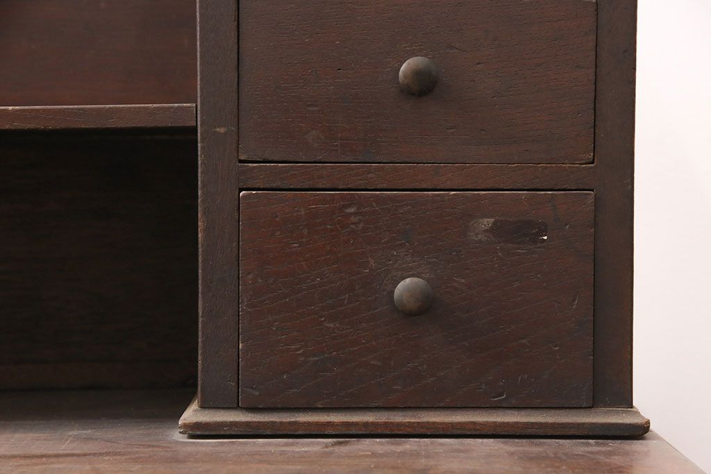 ラフジュ工房> デスク> 片袖机・両袖机 > 和製アンティーク 細々したものもすっきりまとめられる、収納付き帳場机(簿記机、在宅用ライティングビューロー、両袖机、在宅ワーク、在宅用文机、在宅用デスク)(R-052353)