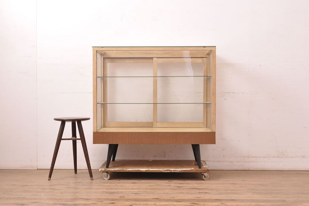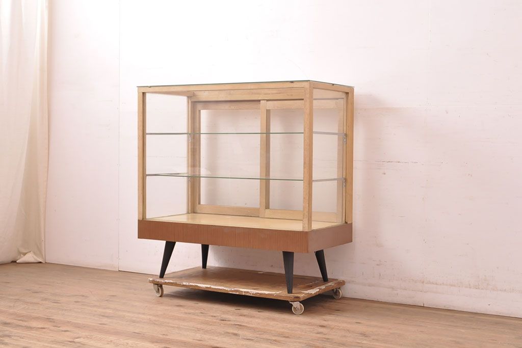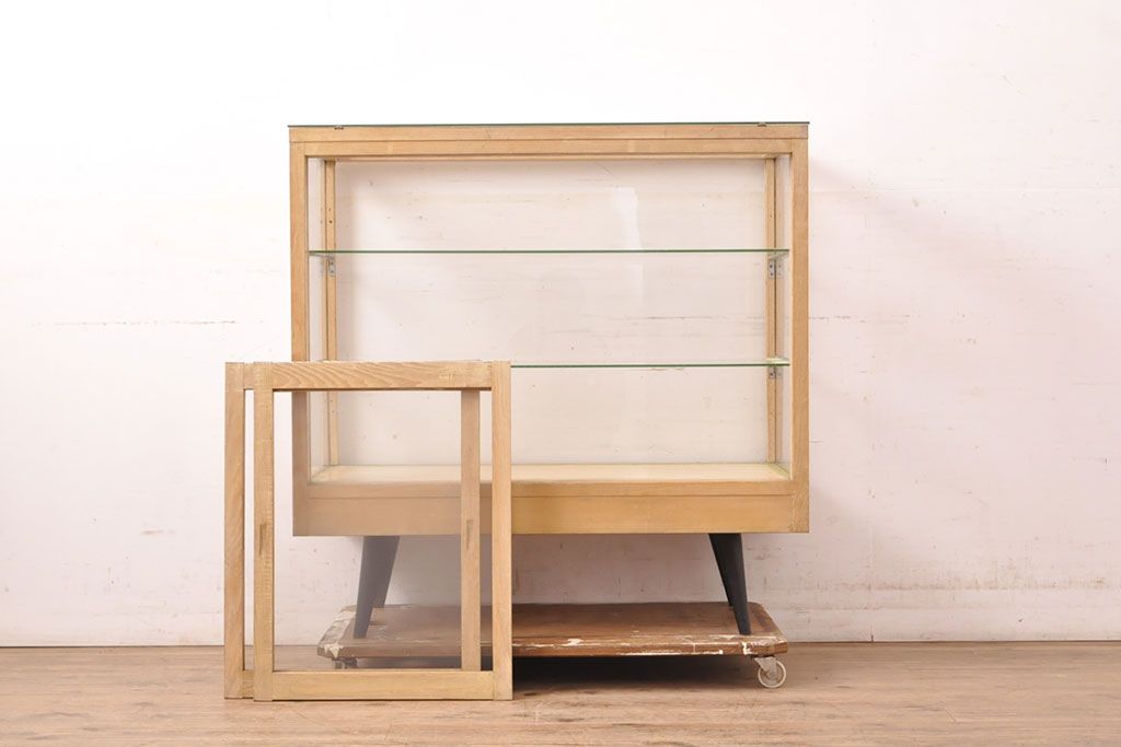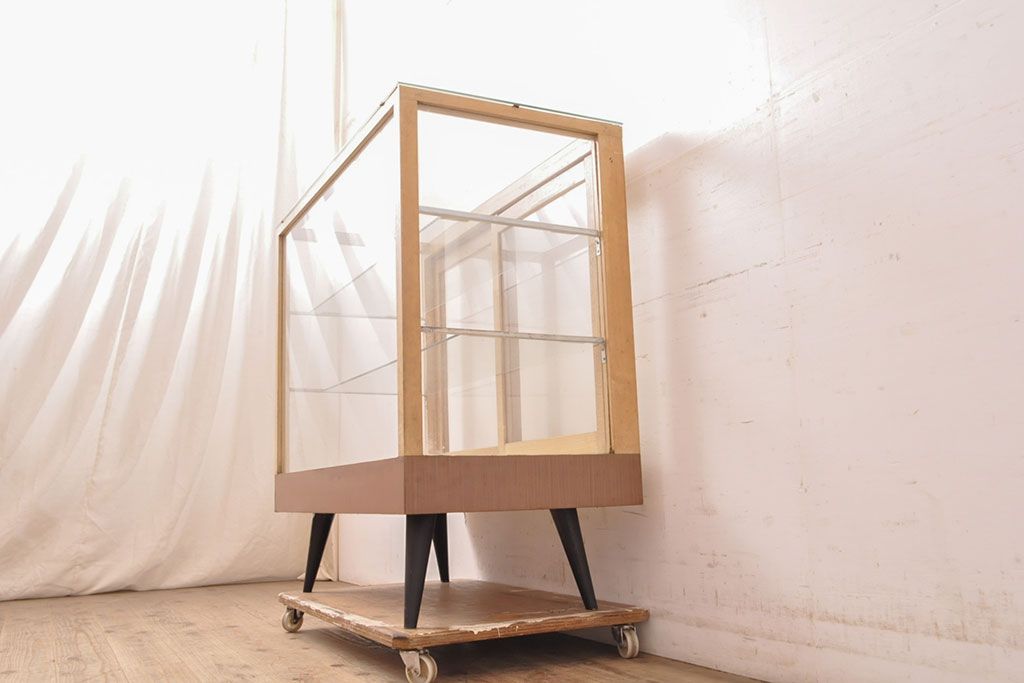 お問い合わせいただければ、優先してアップいたします。昭和レトロ 昔懐かしい佇まいが素敵な木枠ガラスケース(ショーケース、陳列棚、店舗什器)(R-052153)です。