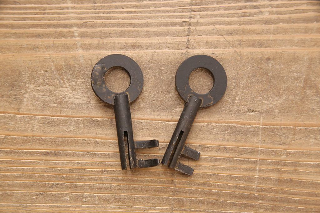 鍵は付属します。画像にありますように、袋に入れお付けします。スムーズに動くように調整していますが、あくまでも古いものや中古品ですので、長期の使用保証は出来かねます。ご購入後不具合が発生した場合は、当店でサポートさせていただきますので、お気軽にご相談くださいませ。