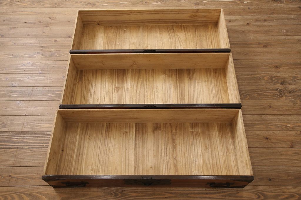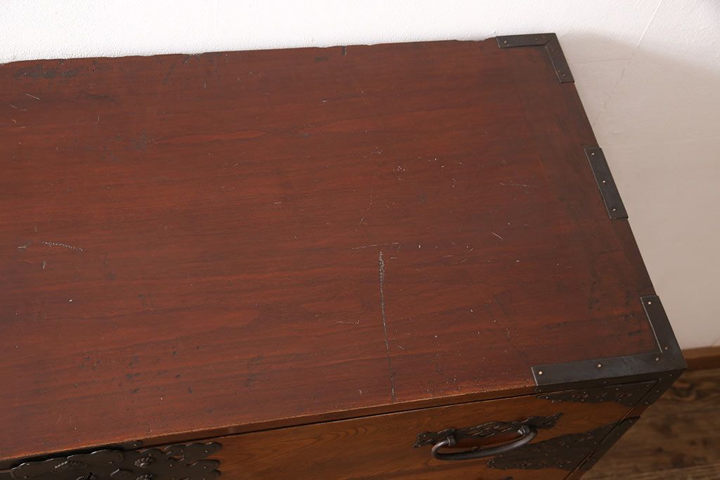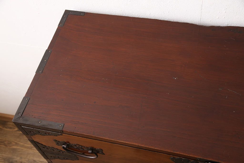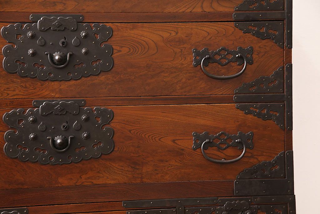 和箪笥> 衣装箪笥 > 和製アンティーク 前面ケヤキ材 希少 迫力ある金具が目を引く佐渡小木箪笥・上段(衣装箪笥、引き出し、ローチェスト、ローボード)(R-052406)