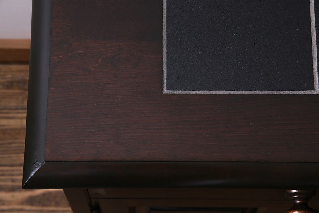 北海道民芸角のサイドボードをリペア&カスタム!天然御影石を使用したタイルトップ天板を取り付け、黄味がかった濃い茶色に着色し仕上げ。(収納棚、カウンター)