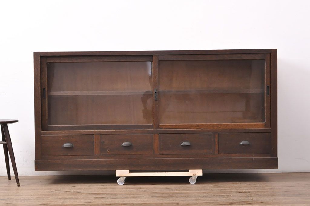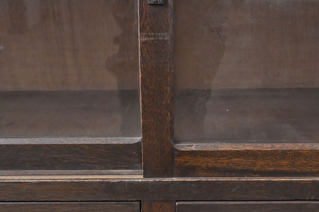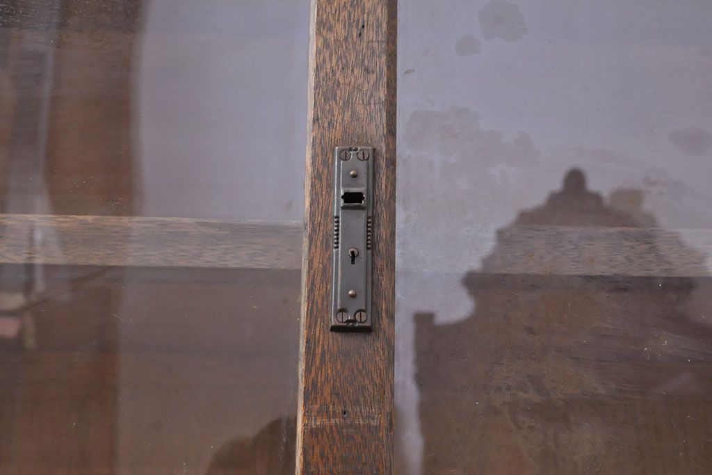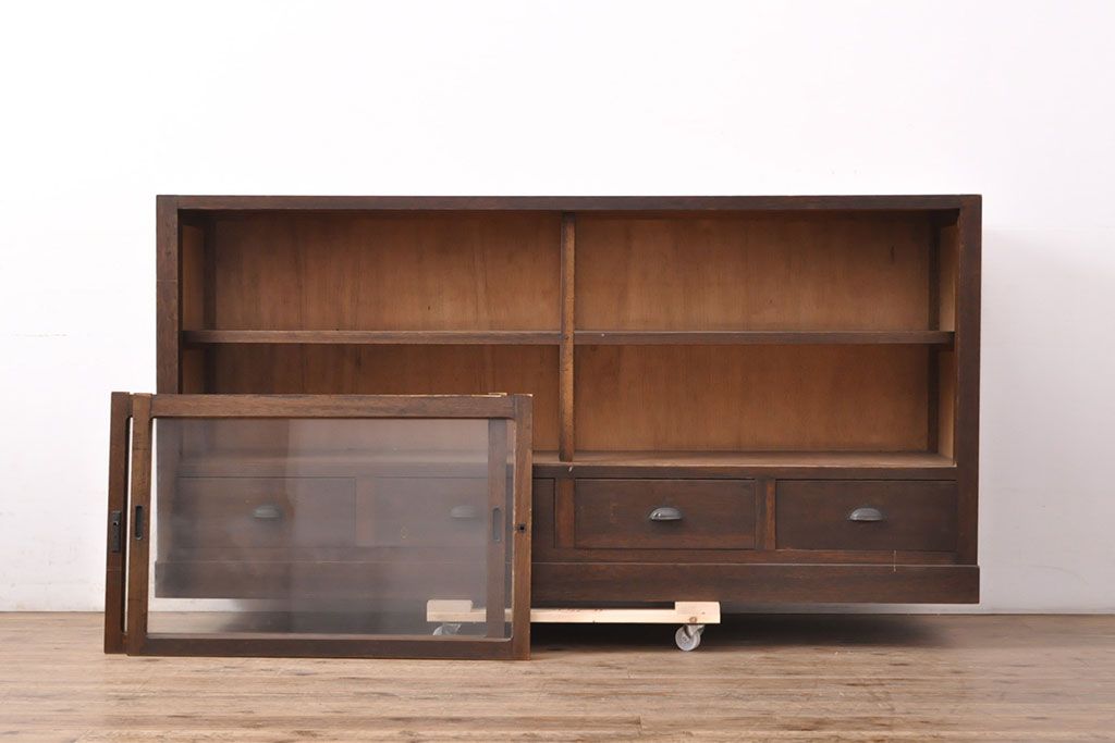 和製アンティーク 昭和初期 ゆらゆらガラスがレトロな雰囲気を醸し出す重ね戸棚・下段(収納棚、食器棚、キャビネット)(R-052266)