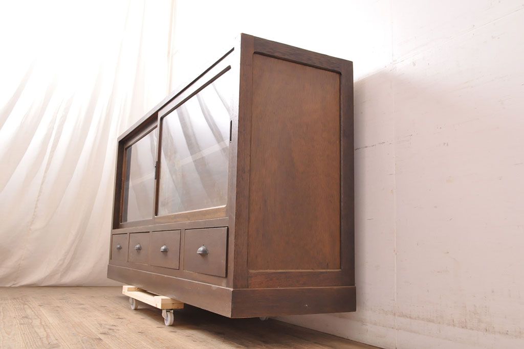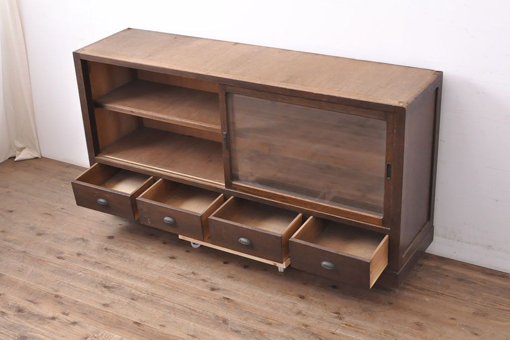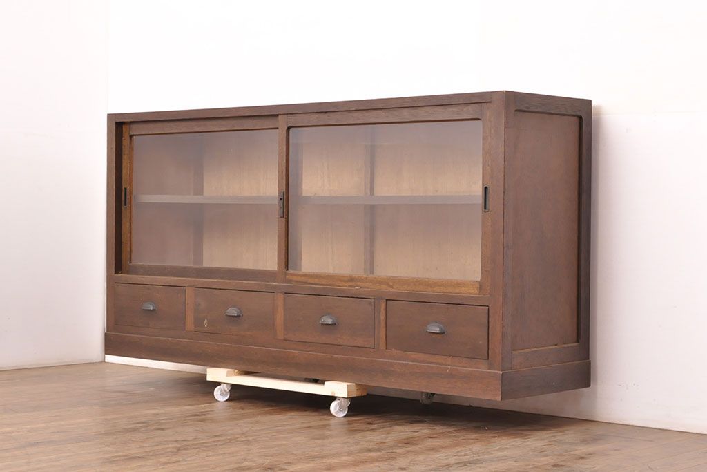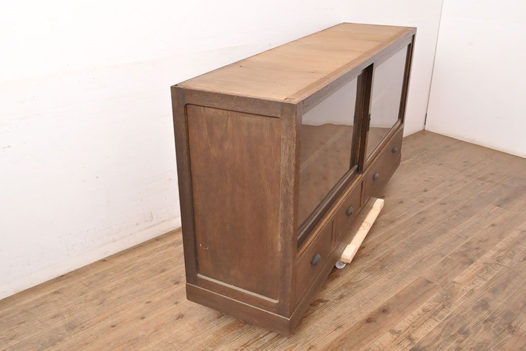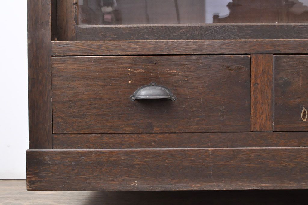 和製アンティーク 昭和初期 ゆらゆらガラスがレトロな雰囲気を醸し出す重ね戸棚・下段(収納棚、食器棚、キャビネット)(R-052266)