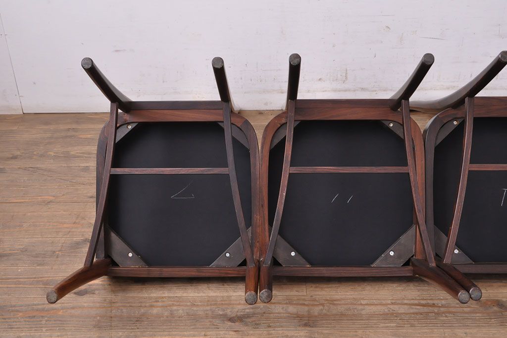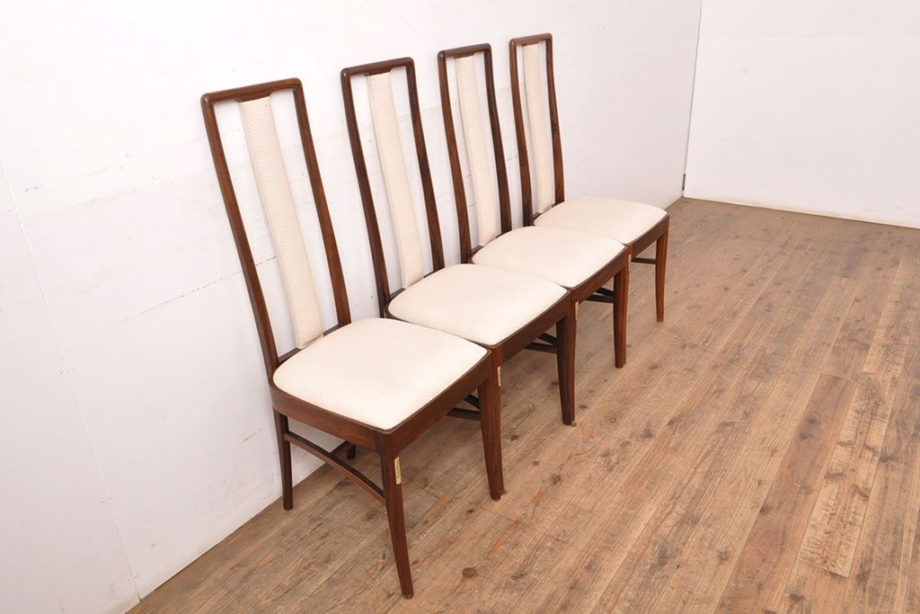 中古 デンマーク高級輸入家具 ローズウッド 高めの背もたれが印象的なチェア4脚セット(椅子、ダイニングチェア、北欧)(定価 4脚約60万円、北欧)(R-052364)