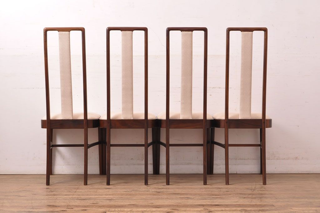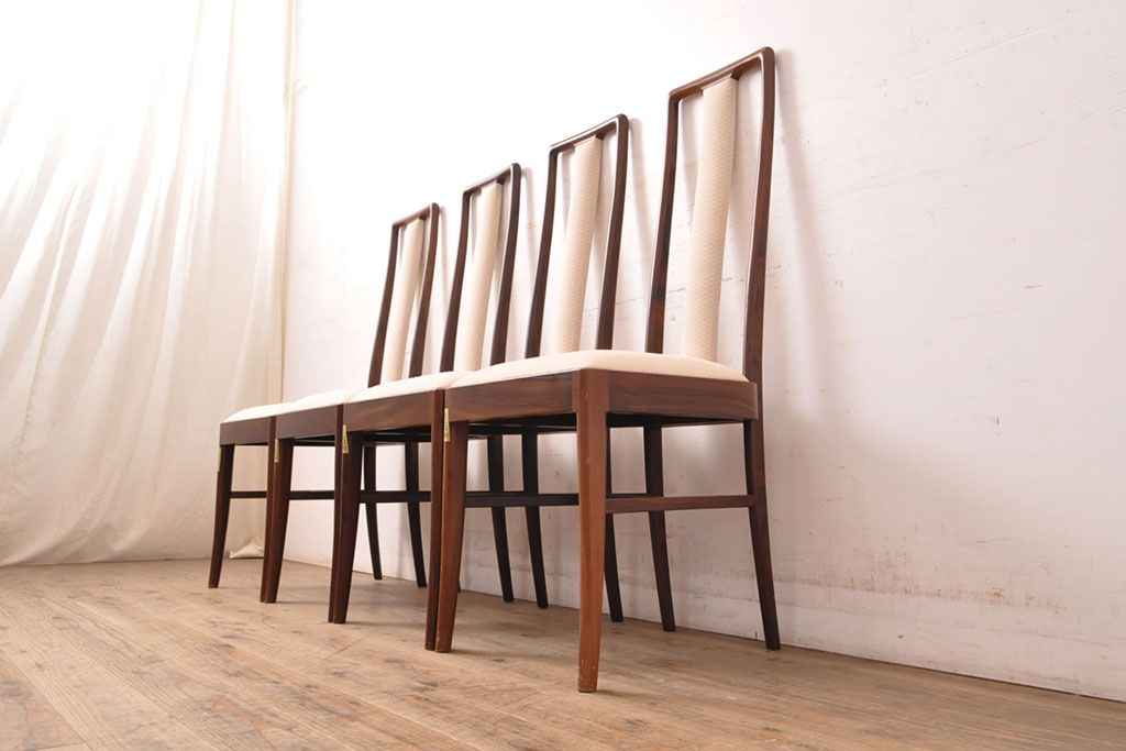 椅子・ベンチ> ダイニングチェア > 中古 デンマーク高級輸入家具 ローズウッド 高めの背もたれが印象的なチェア4脚セット(椅子、ダイニングチェア、北欧)(定価 4脚約60万円、北欧)(R-052364)