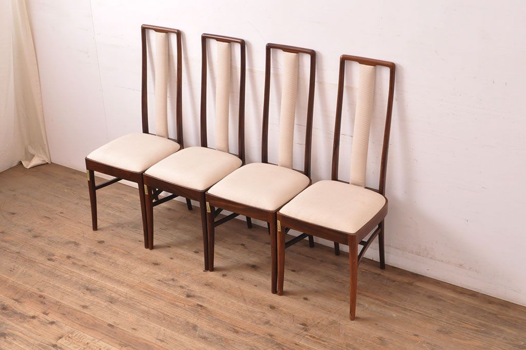 中古 デンマーク高級輸入家具 ローズウッド 高めの背もたれが印象的なチェア4脚セット(椅子、ダイニングチェア)(定価 4脚約60万円)(R-052364)です。