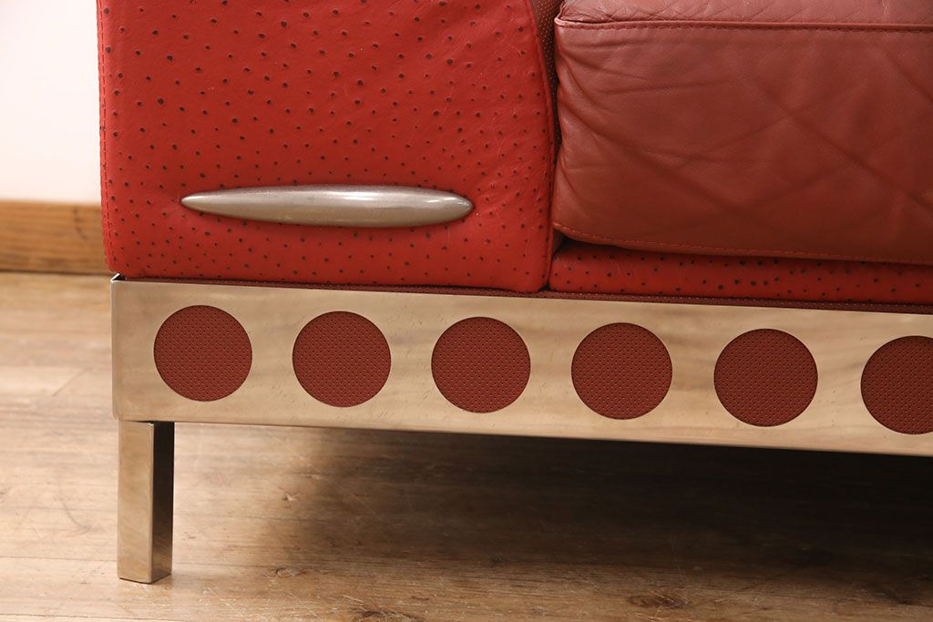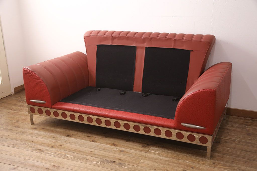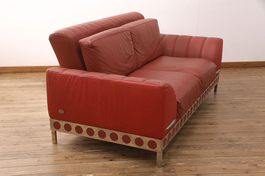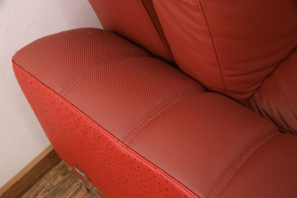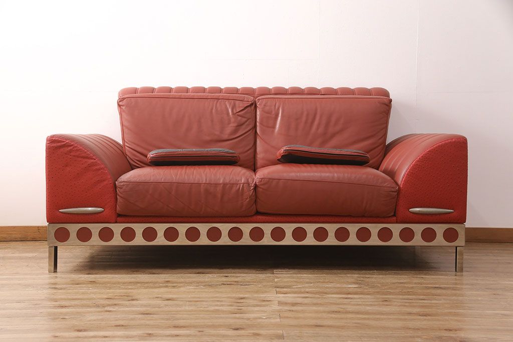 椅子・ベンチ> アームチェア > 中古 美品 最高級 Lamborghini(ランボルギーニ)コレクション Formitalia(フォルミタリア)製作 鮮やかな赤が印象的な本革2人掛けソファ(定価約240万円)(二人掛けソファ、アームソファ、2P)(R-052541)