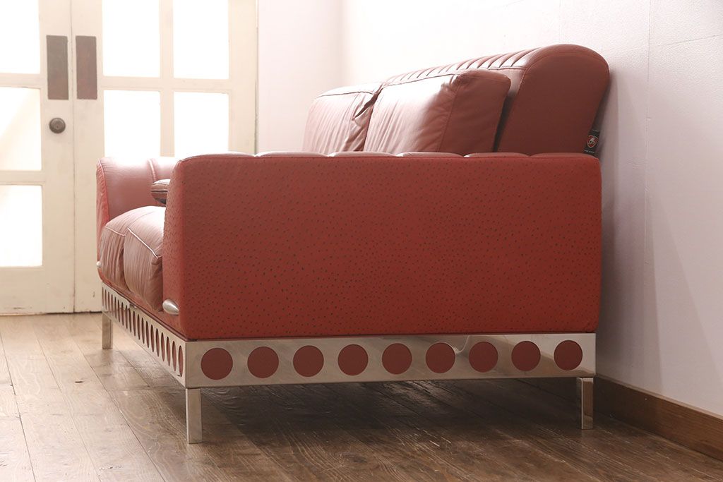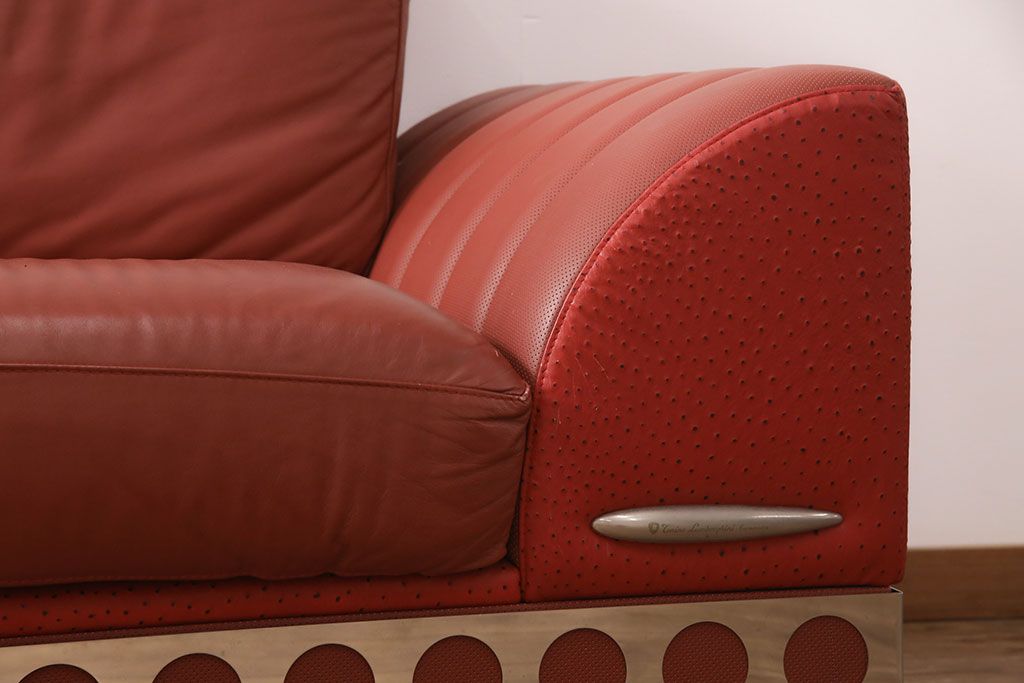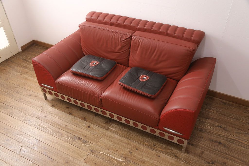 中古 美品 最高級 Lamborghini(ランボルギーニ)コレクション Formitalia(フォルミタリア)製作 鮮やかな赤が印象的な本革2人掛けソファ(定価約240万円)(二人掛けソファ、アームソファ、2P)(R-052541)です。