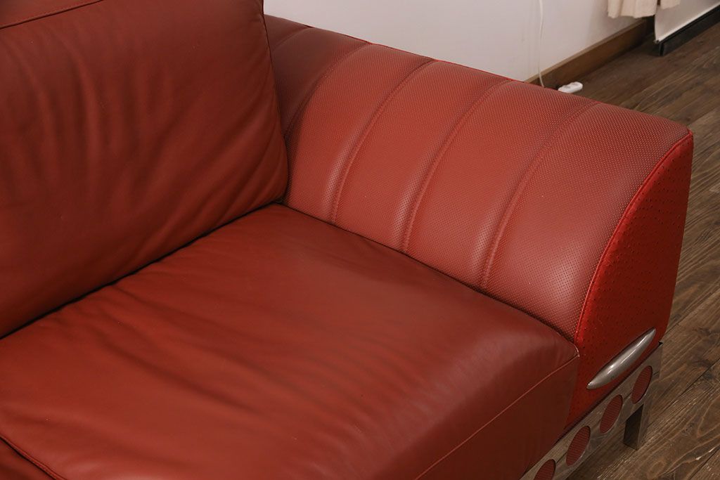中古 美品 最高級 Lamborghini(ランボルギーニ)コレクション Formitalia(フォルミタリア)製作 鮮やかな赤が印象的な本革2人掛けソファ(定価約240万円)(二人掛けソファ、アームソファ、2P)(R-052541)