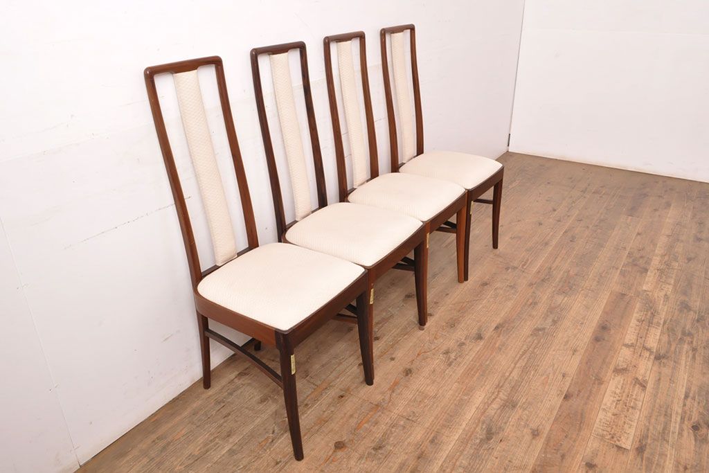 中古 デンマーク高級輸入家具 ローズウッド 高めの背もたれが印象的なチェア4脚セット(椅子、ダイニングチェア)(定価 4脚約60万円)(R-052362)です。