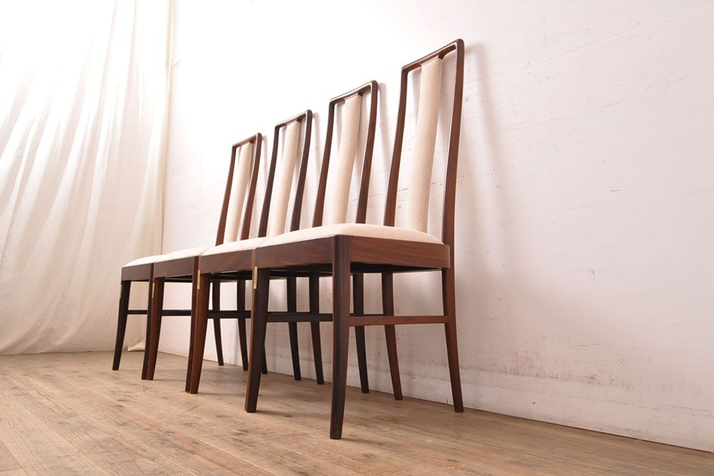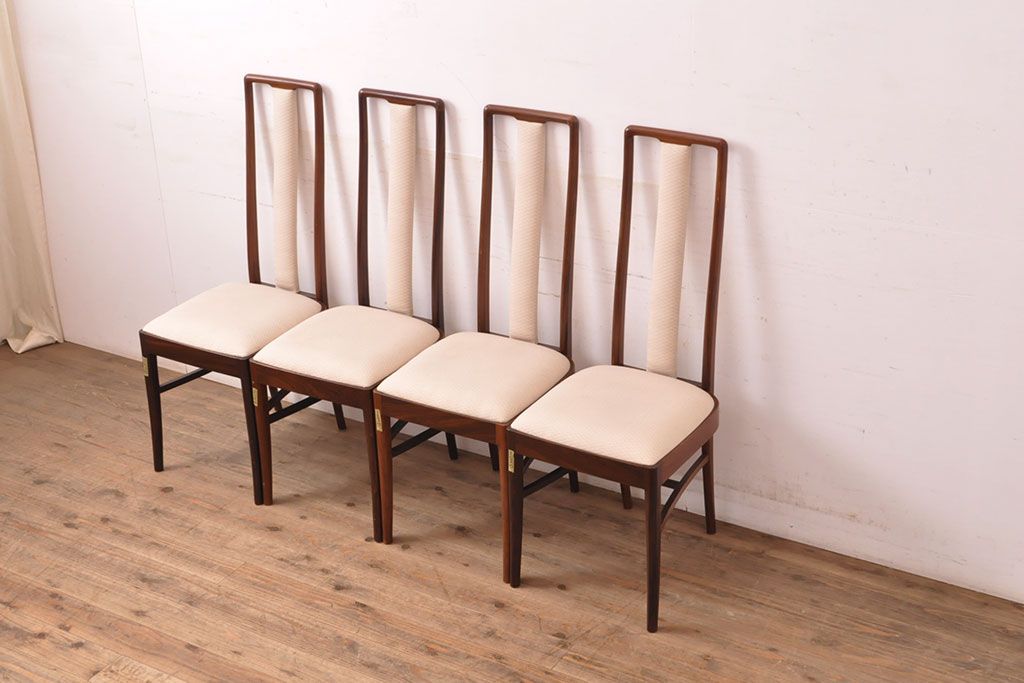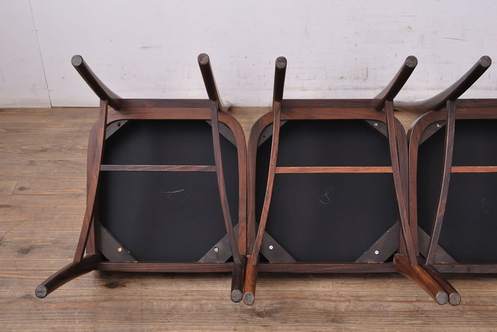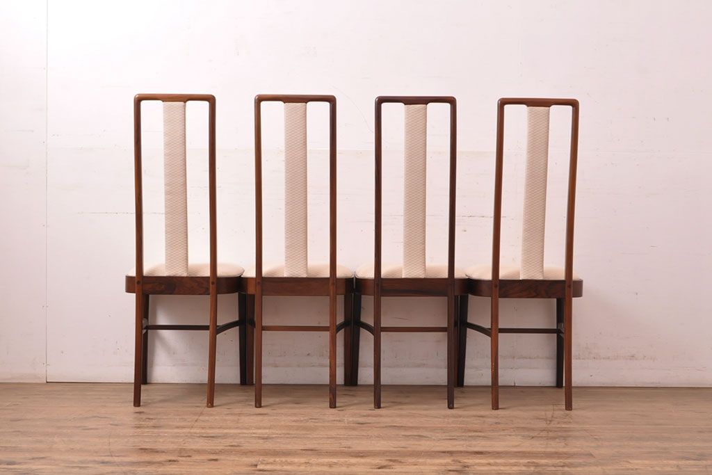 椅子・ベンチ> ダイニングチェア > 中古 デンマーク高級輸入家具 ローズウッド 高めの背もたれが印象的なチェア4脚セット(椅子、ダイニングチェア、北欧)(定価 4脚約60万円、北欧)(R-052362)