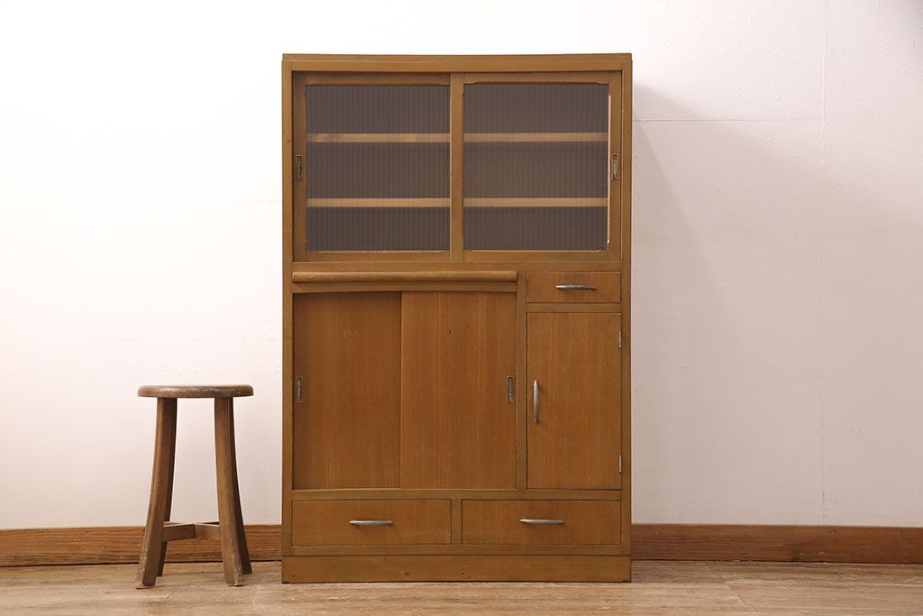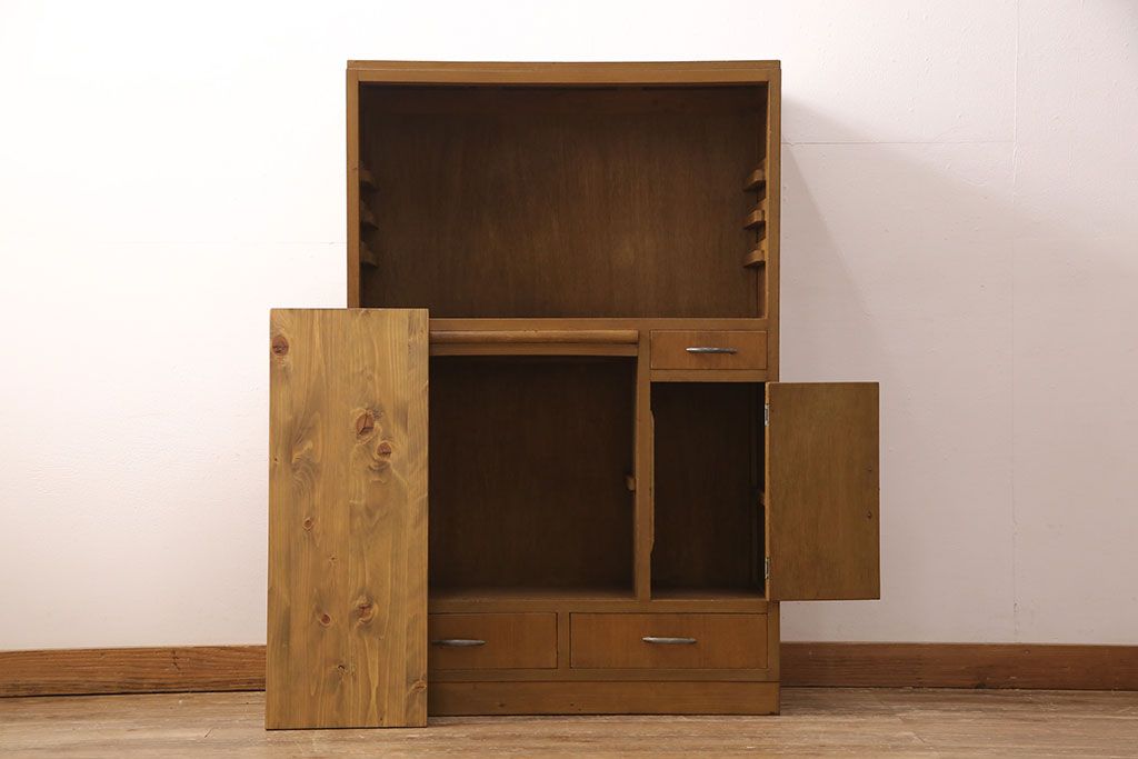 食器棚の見た目を変えずに綺麗にリペア!濃い茶色で着色し仕上げ。(収納棚、キャビネット、作業台付き)