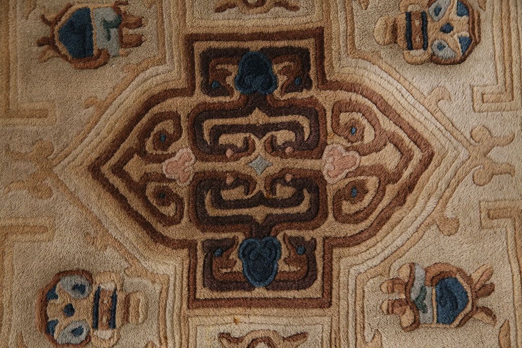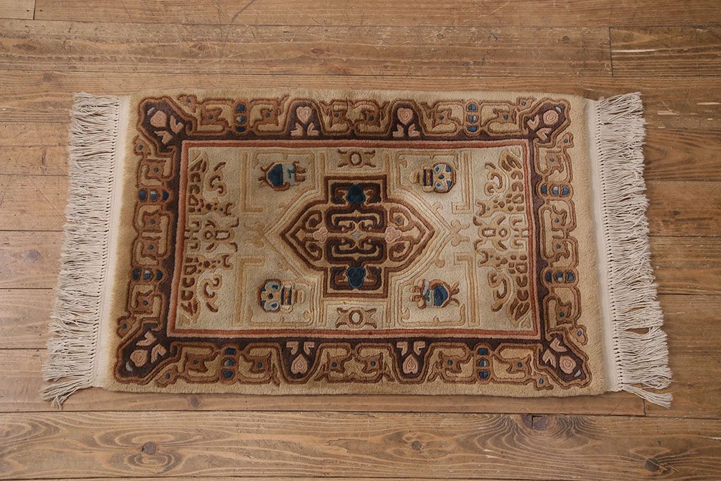 雑貨> 絨毯・ラグ > 中古 中国段通 120段 和洋どちらの空間にも合わせやすいウール製玄関マット(ラグ、絨毯)(R-050304)