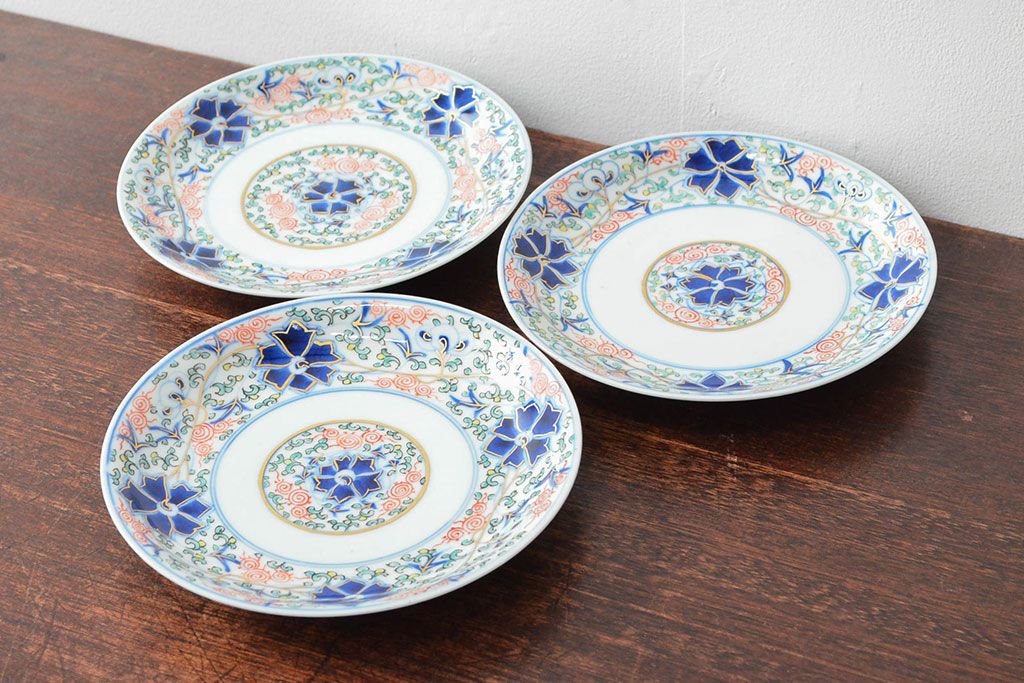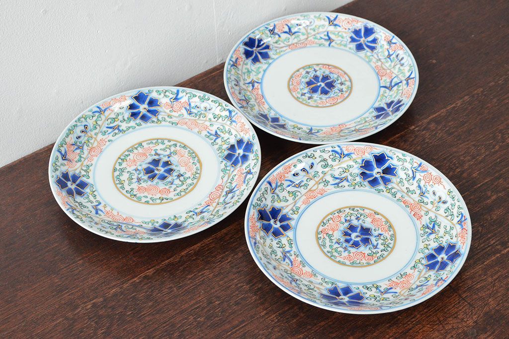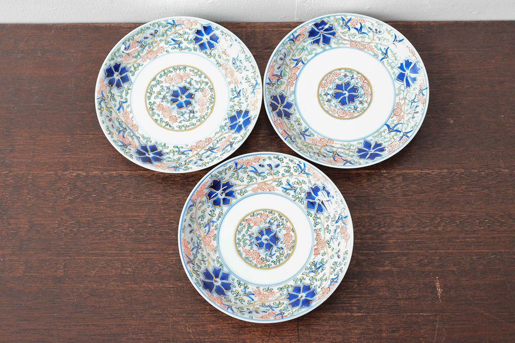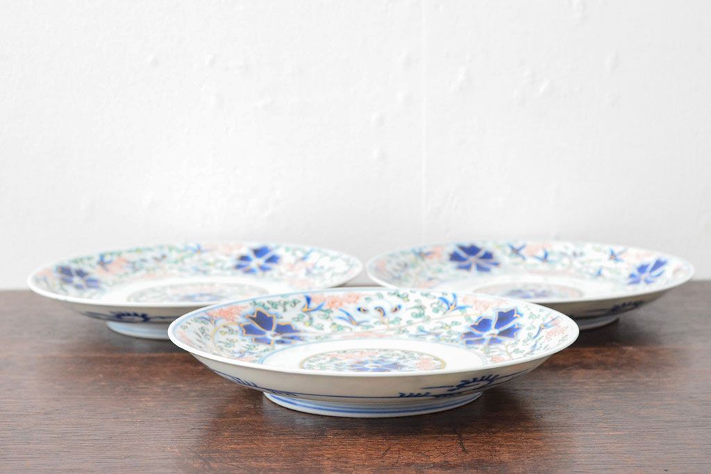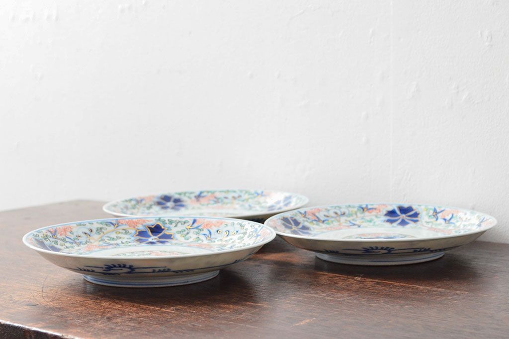 ラフジュ工房> 和食器・茶道具> 皿 > 大清光緒年製 色絵染付 六寸皿3枚セット(伊万里、中国?)(R-052229)