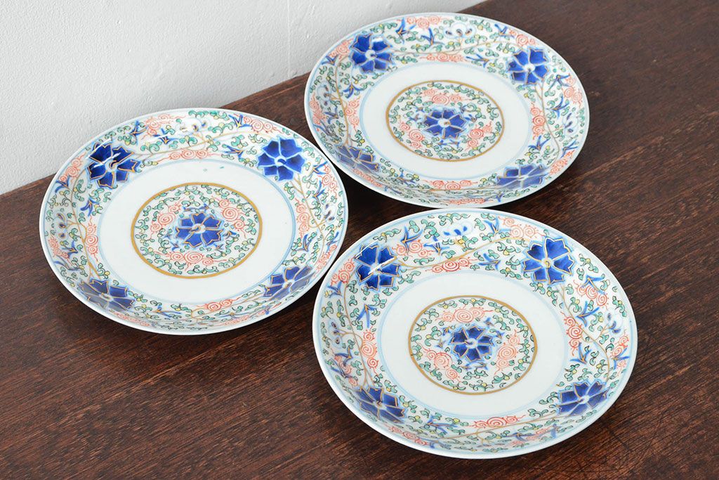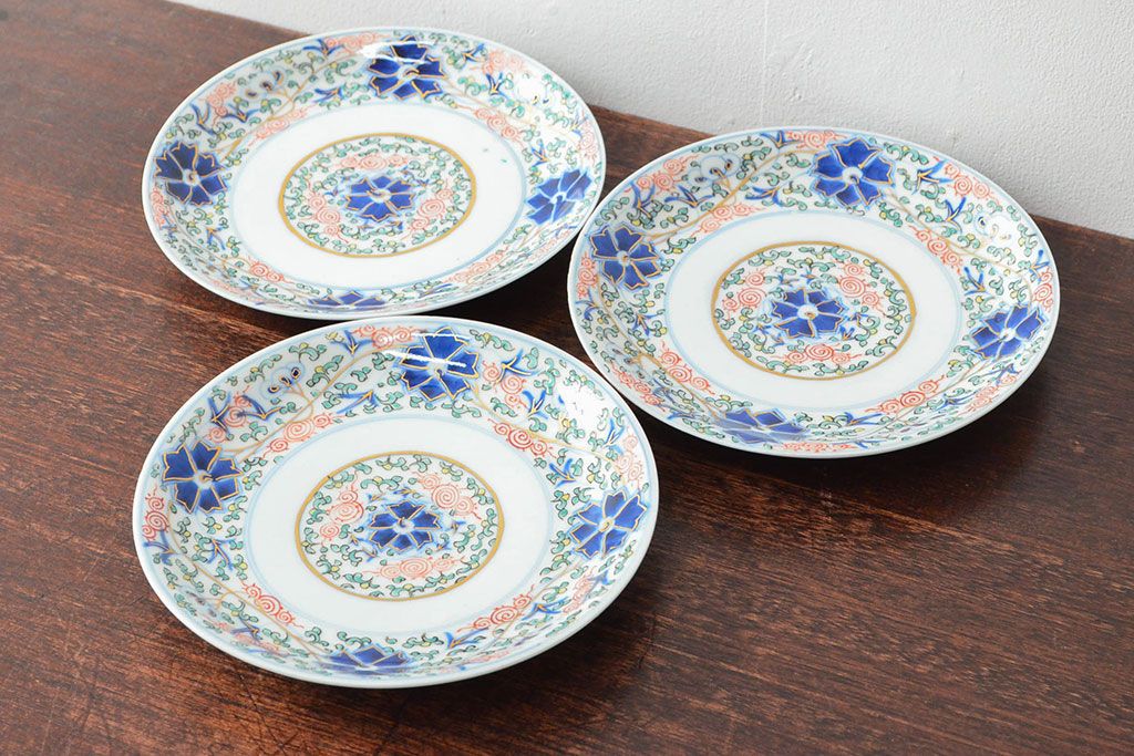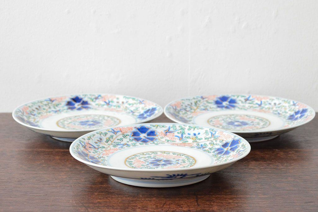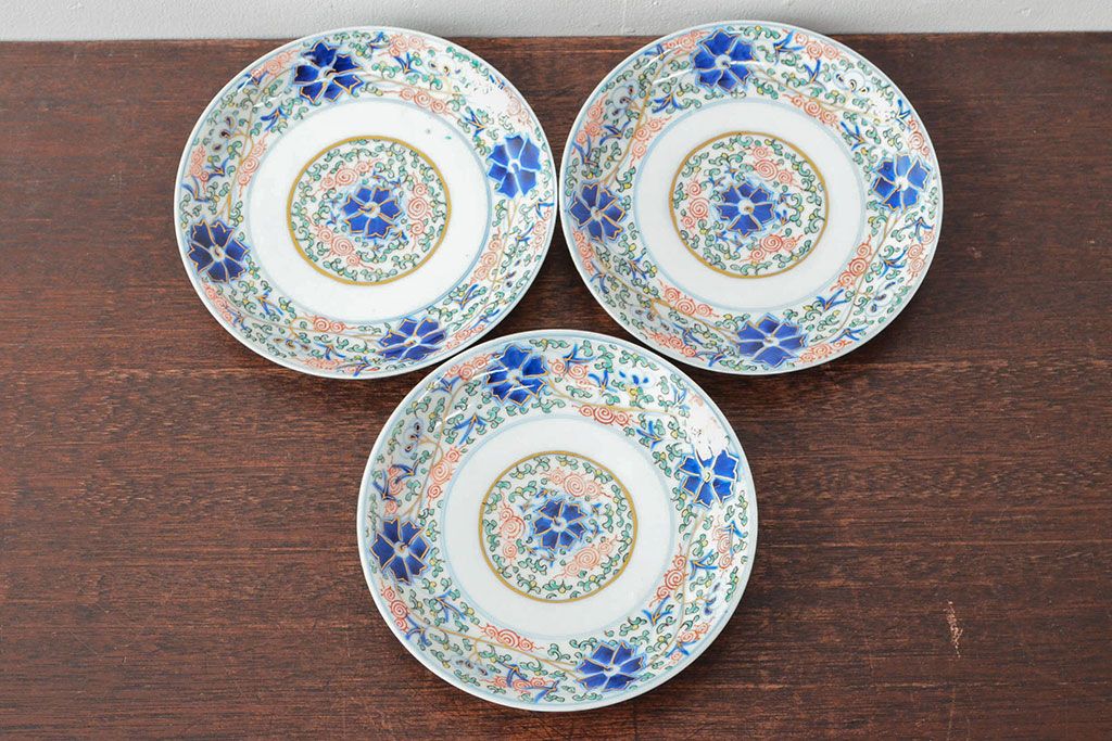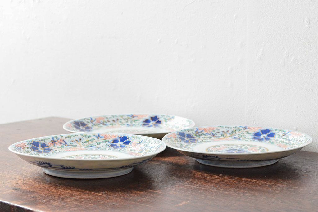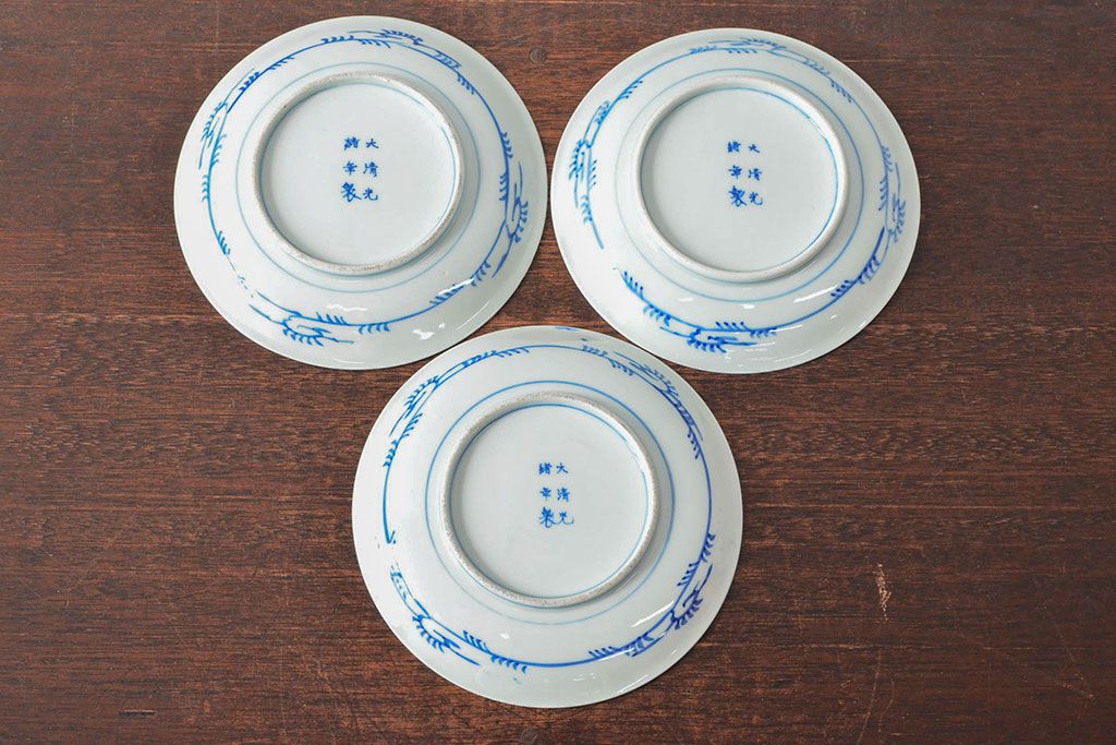 ラフジュ工房> 和食器・茶道具> 皿 > 大清光緒年製 色絵染付 六寸皿3枚セット(伊万里、中国?)(R-052232)