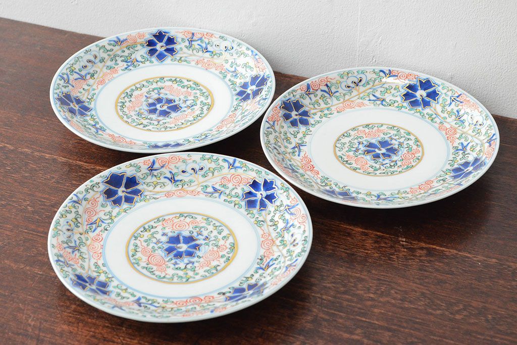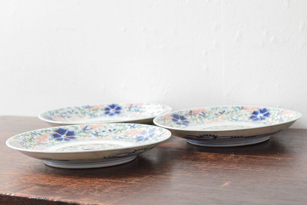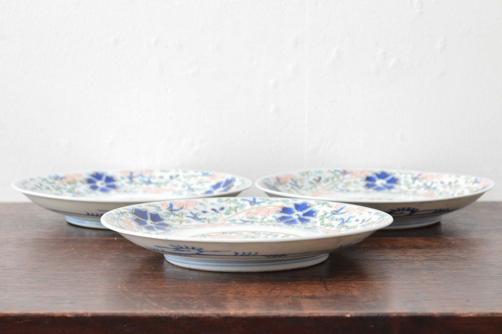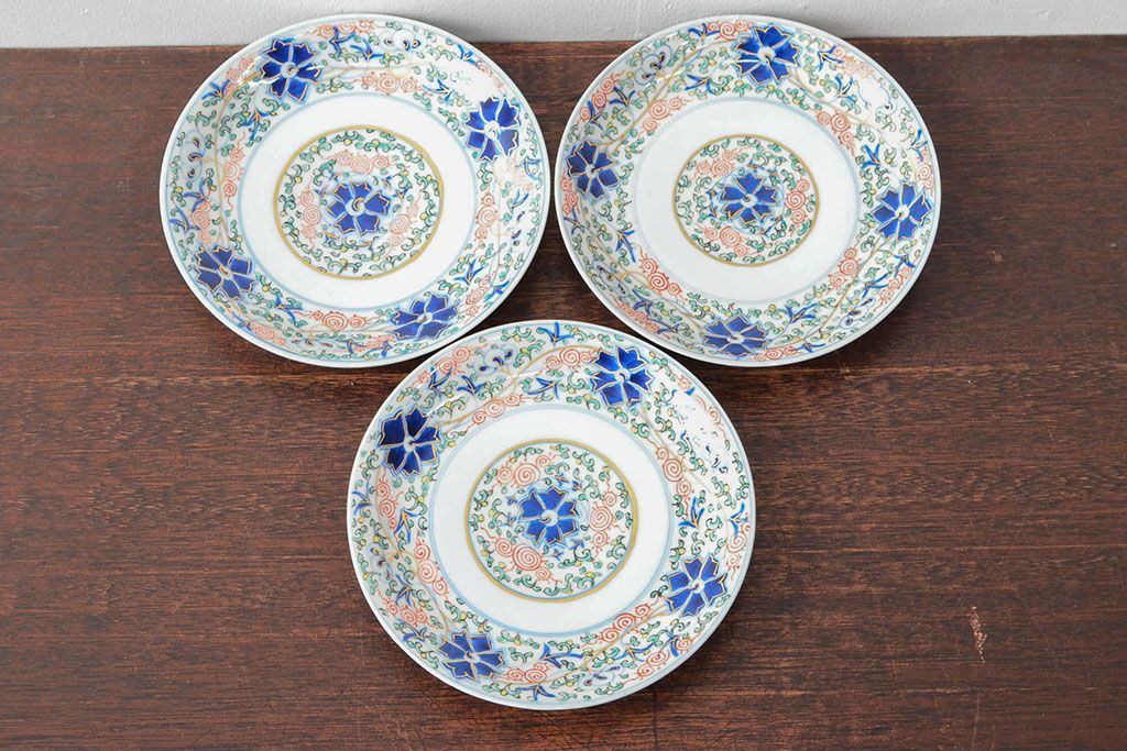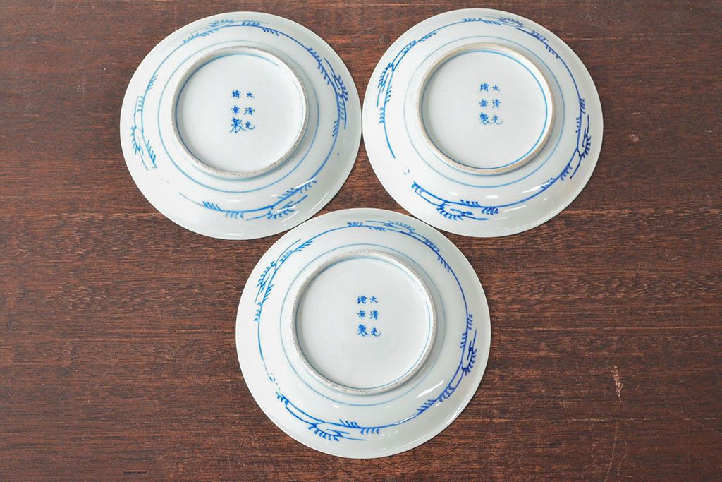 ラフジュ工房> 和食器・茶道具> 皿 > 大清光緒年製 色絵染付 六寸皿3枚セット(伊万里、中国?)(R-052234)