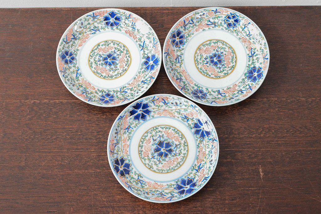ラフジュ工房> 和食器・茶道具> 皿 > 大清光緒年製 色絵染付 六寸皿3枚セット(伊万里、中国?)(R-052235)