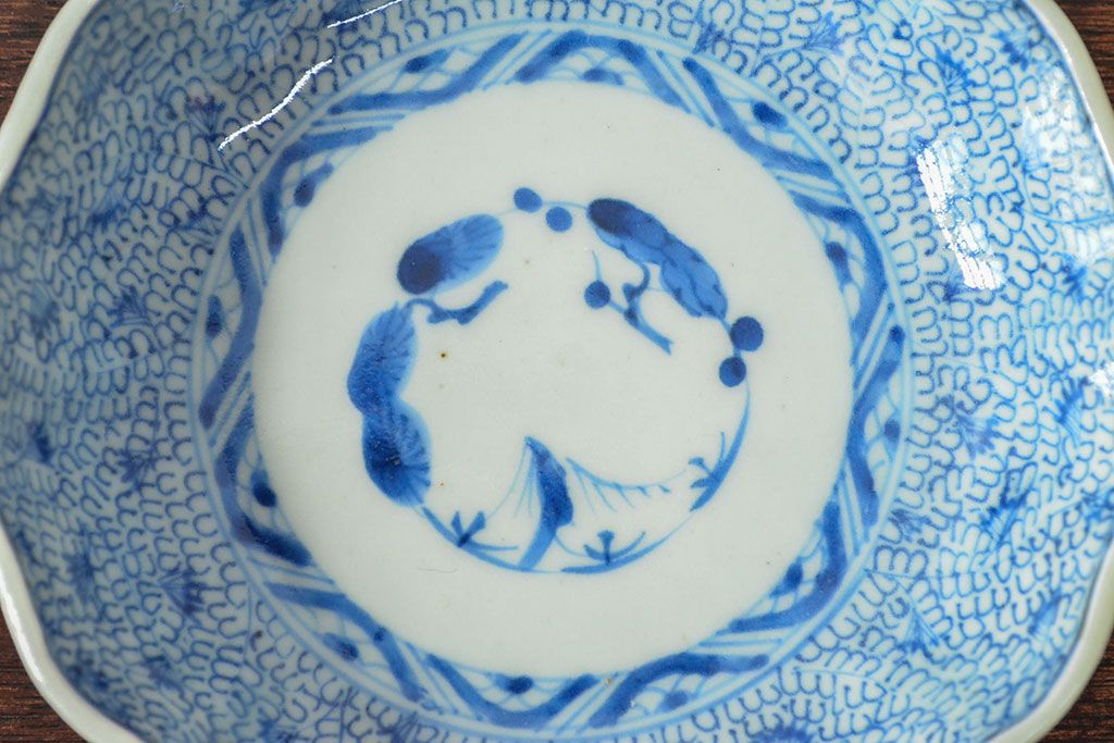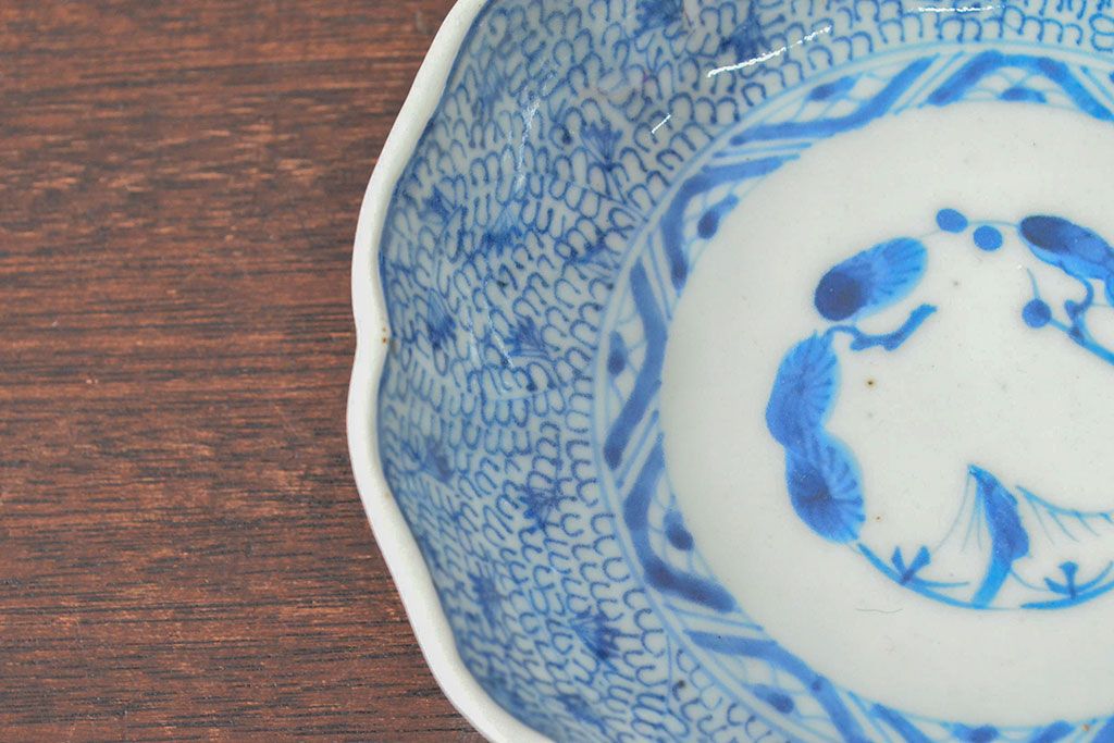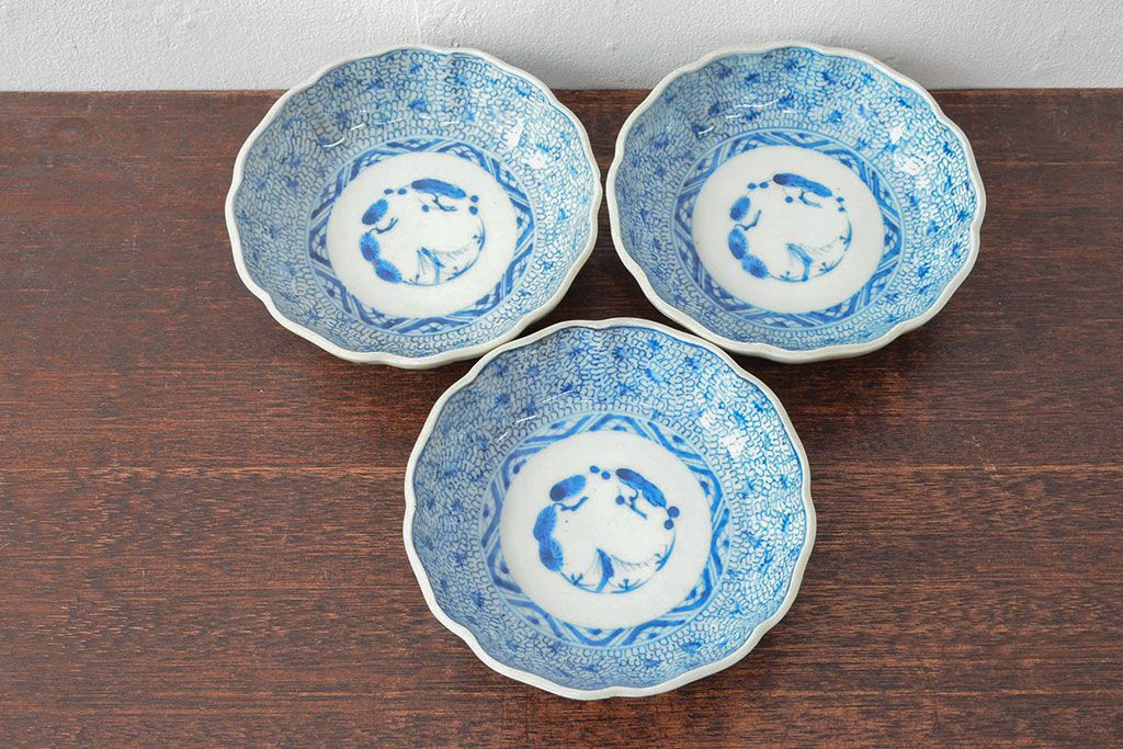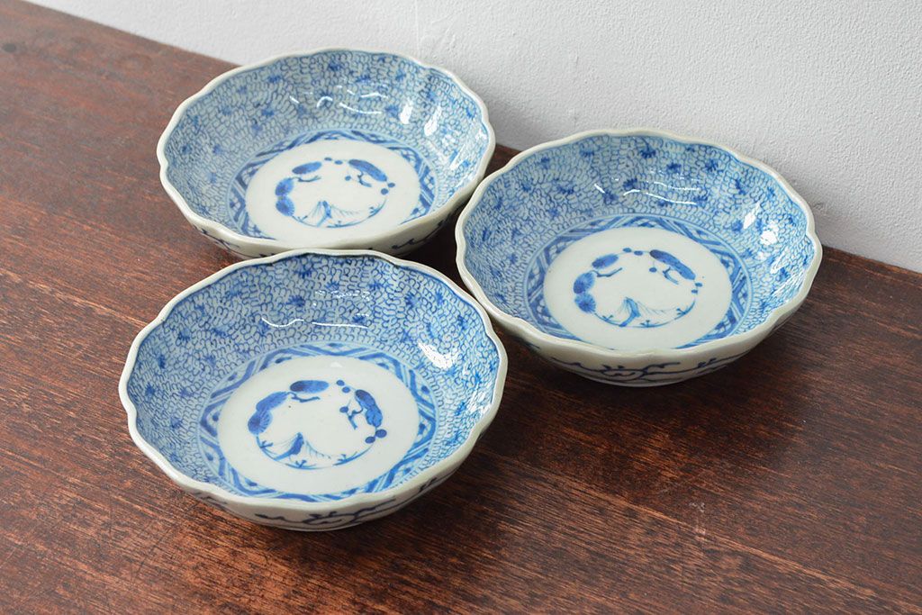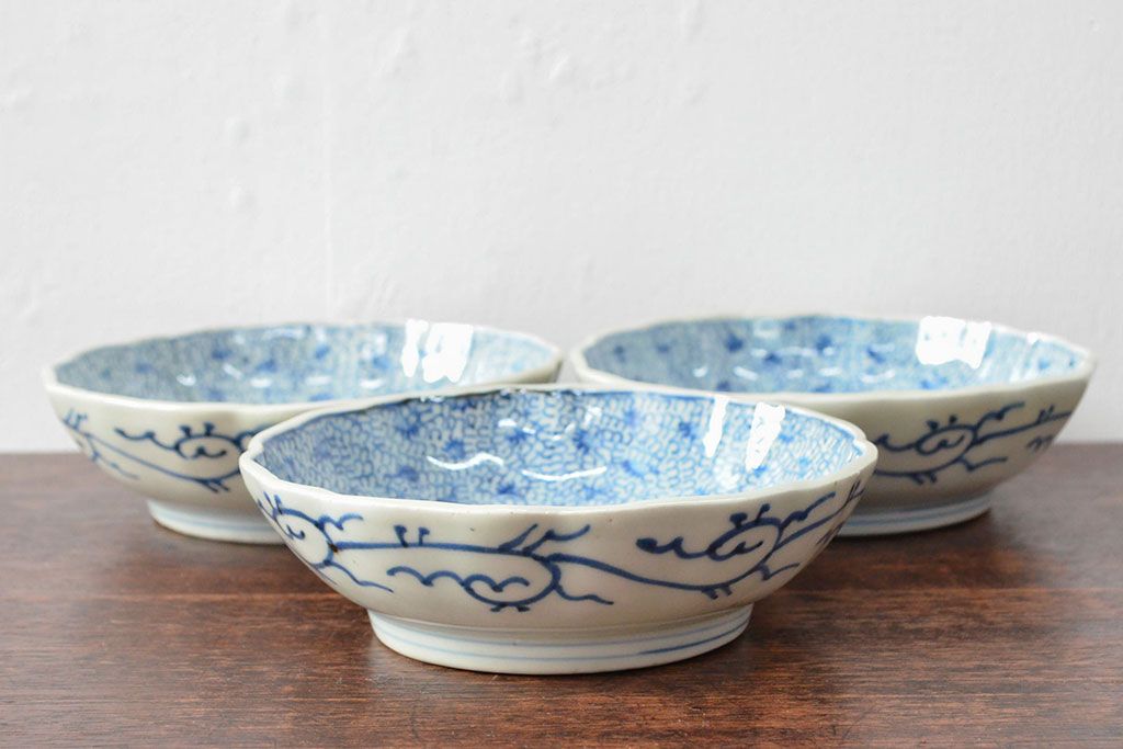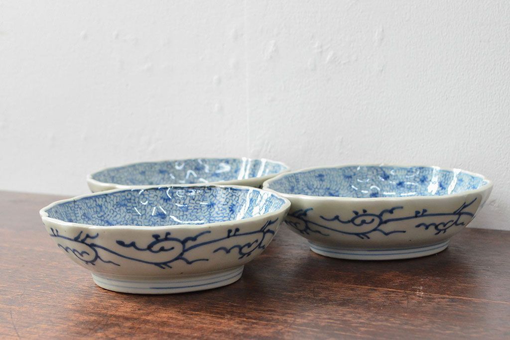 ラフジュ工房> 和食器・茶道具 > 江戸後期 古伊万里 成化年製 微塵唐草文染付 なます皿3枚セット(和食器)(R-052254)