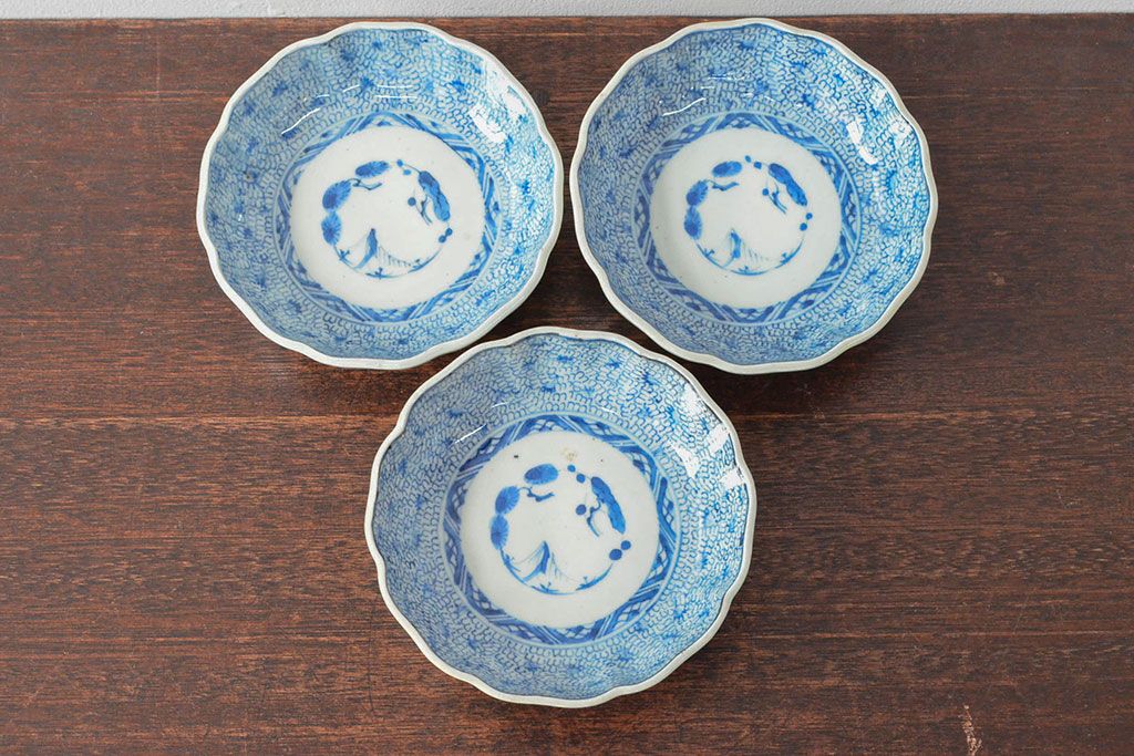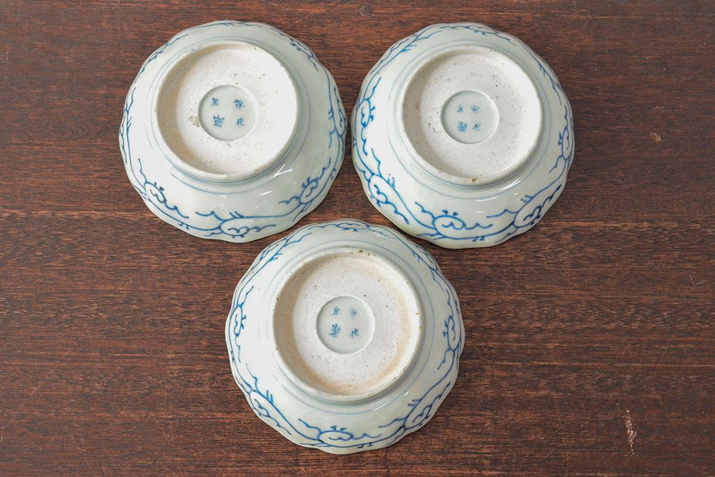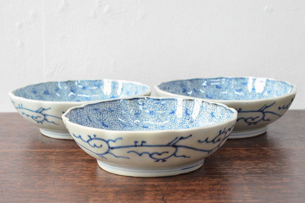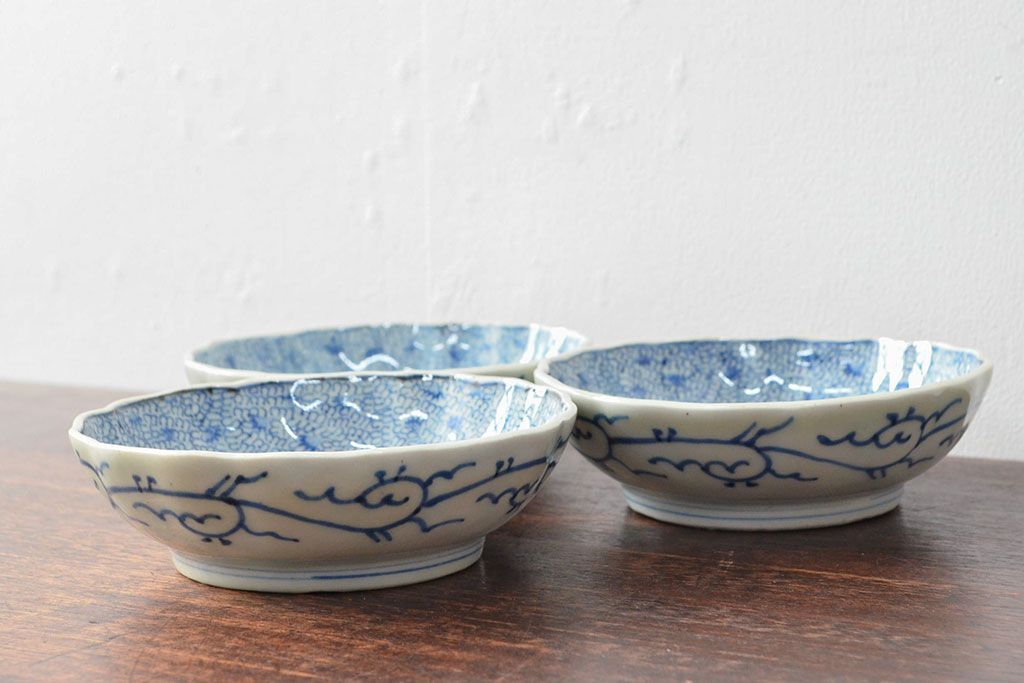 ラフジュ工房> 和食器・茶道具 > 江戸後期 古伊万里 成化年製 微塵唐草文染付 なます皿3枚セット(和食器)(R-052258)