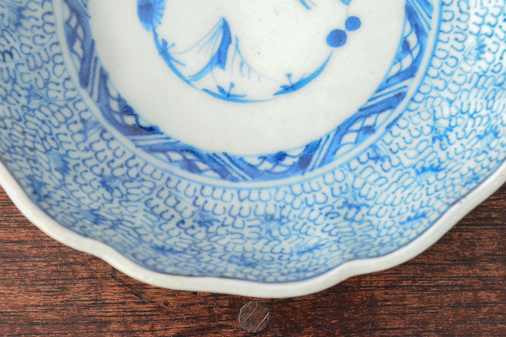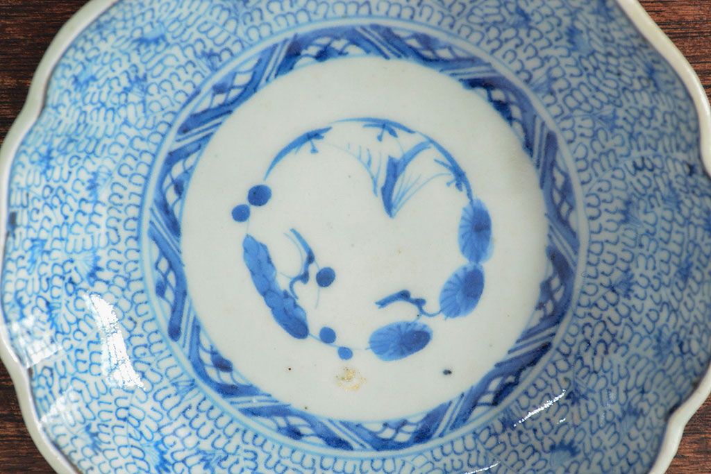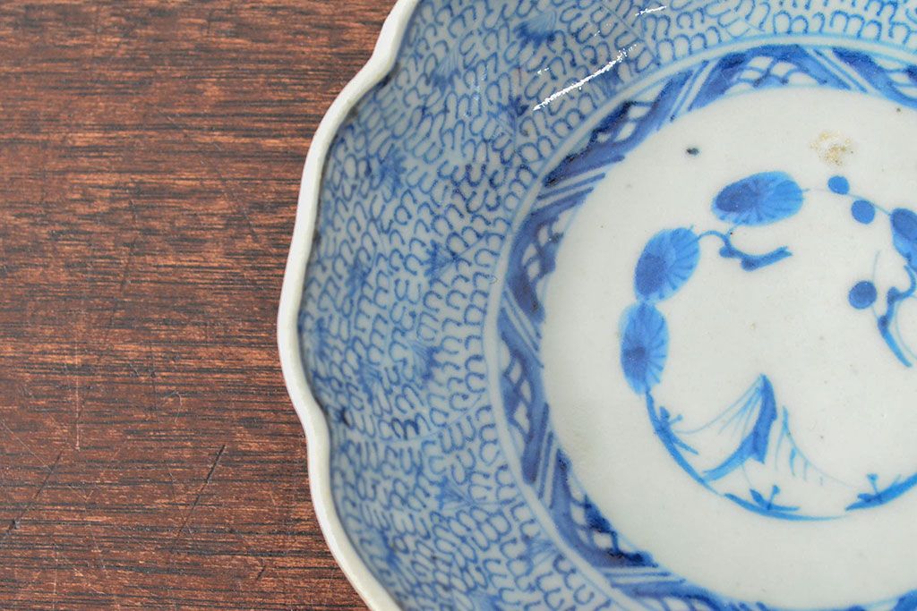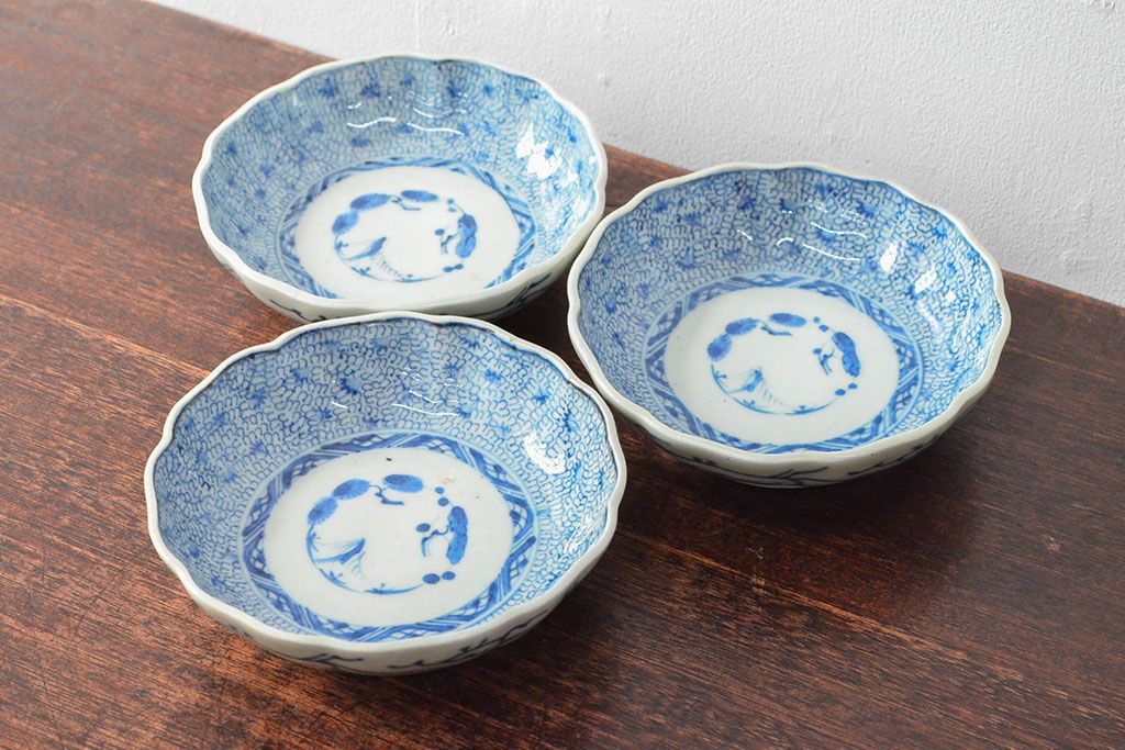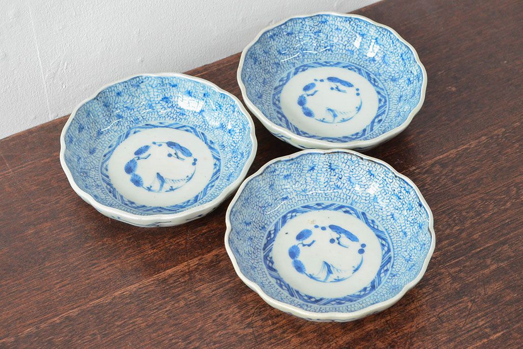 ラフジュ工房> 和食器・茶道具 > 江戸後期 古伊万里 成化年製 微塵唐草文染付 なます皿3枚セット(和食器)(R-052258)