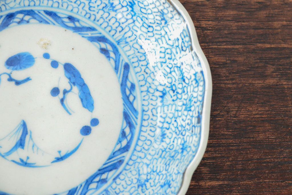 ラフジュ工房> 和食器・茶道具> 皿 > 江戸後期 古伊万里 成化年製 微塵唐草文染付 なます皿3枚セット(和食器)(R-052258)