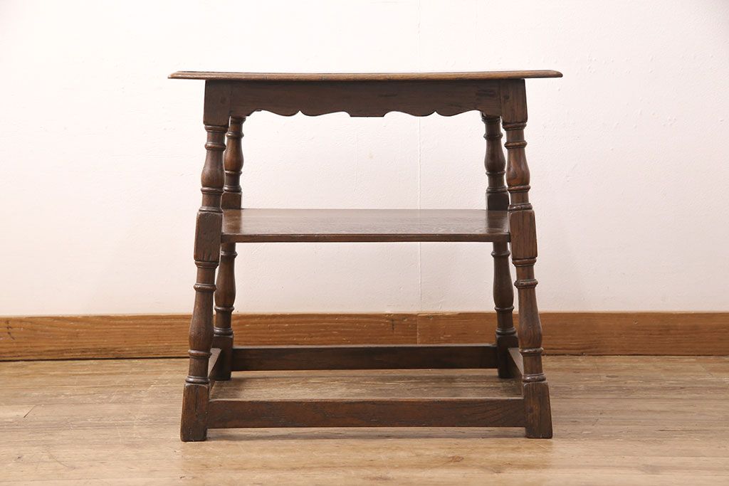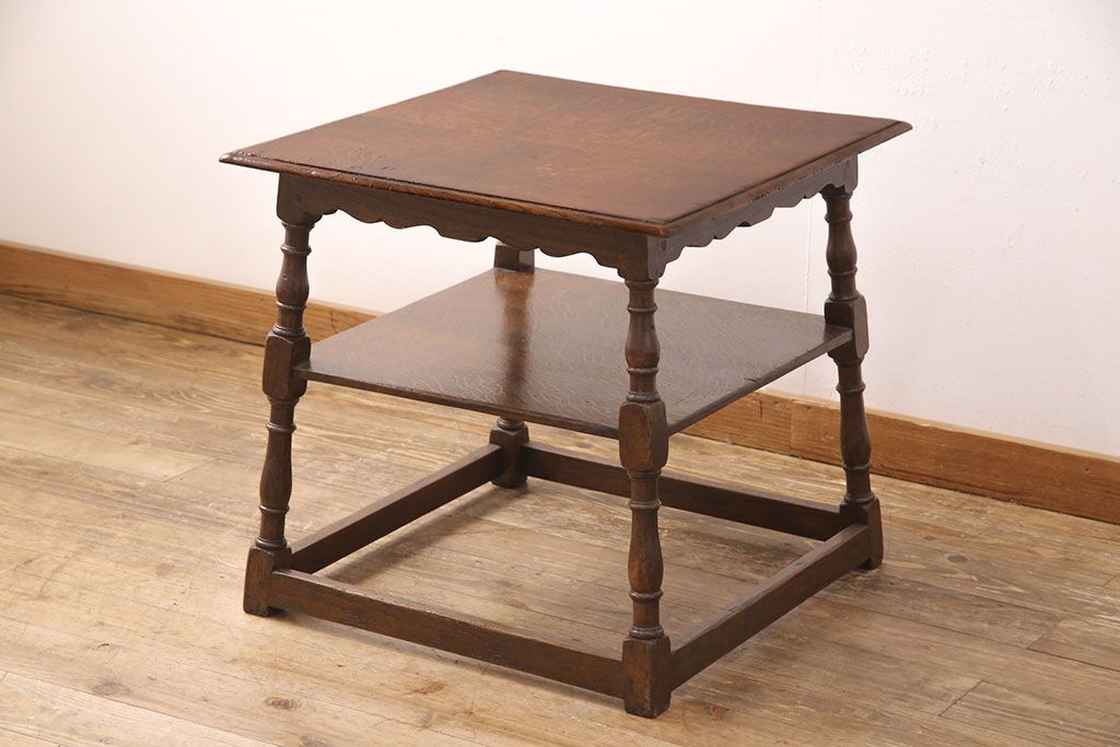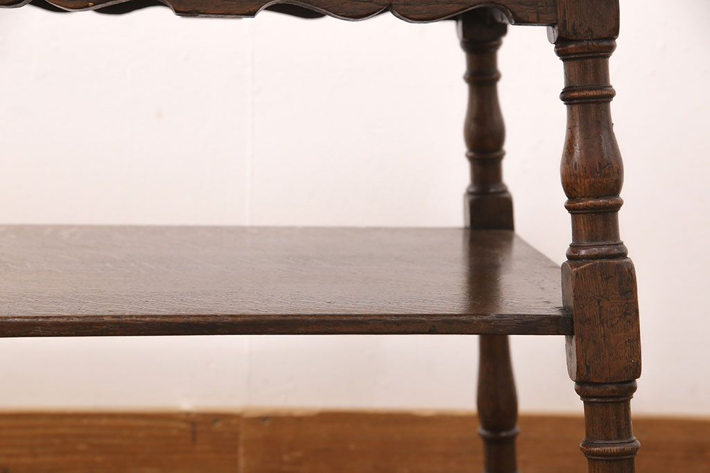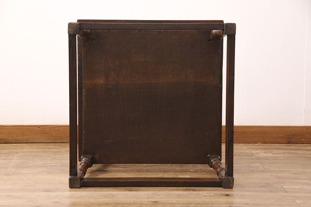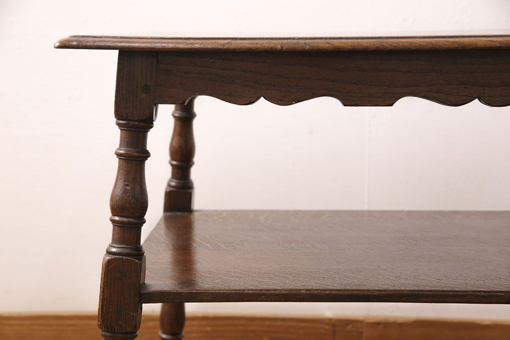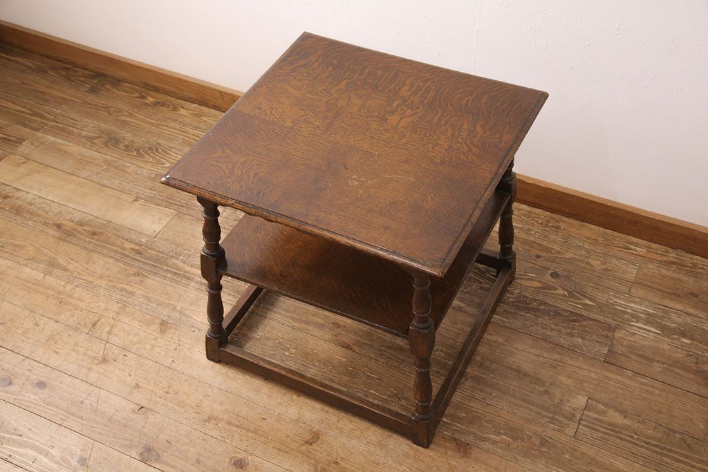イギリスアンティーク オーク材 珍しいデザインが特徴的なサイドテーブル(飾り台、ナイトテーブル)(R-052687)
