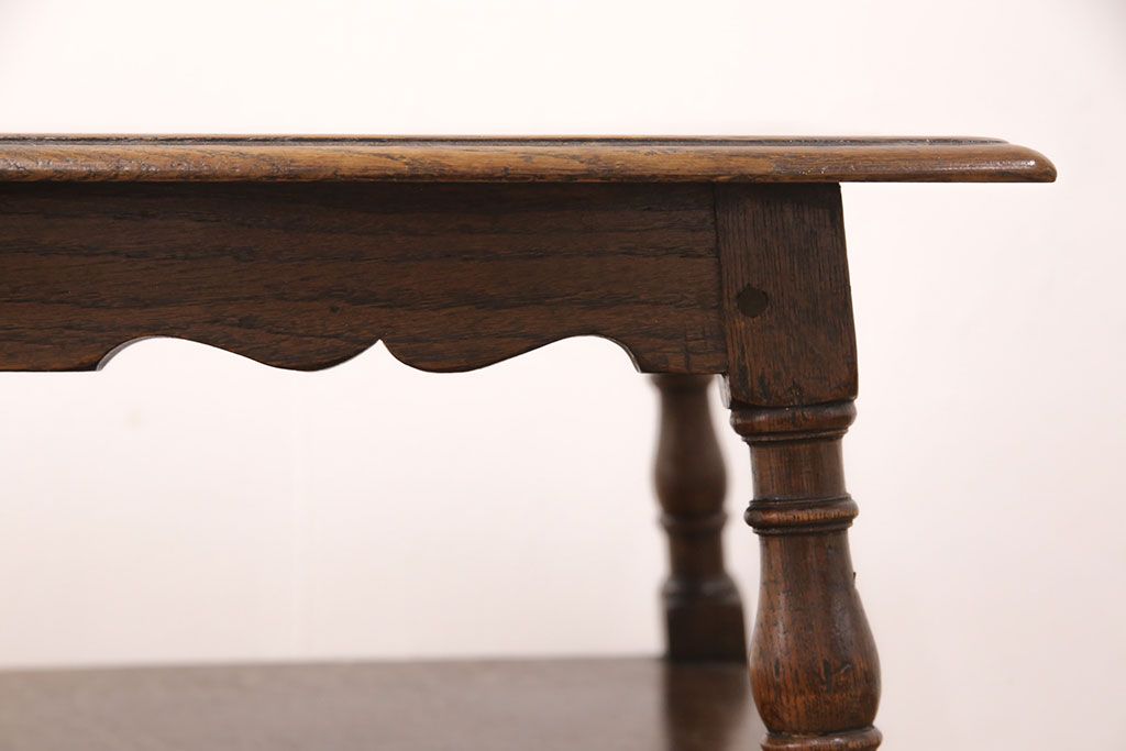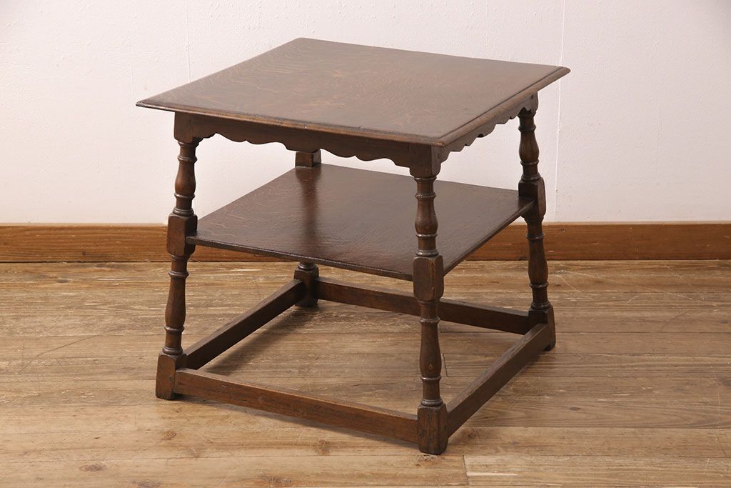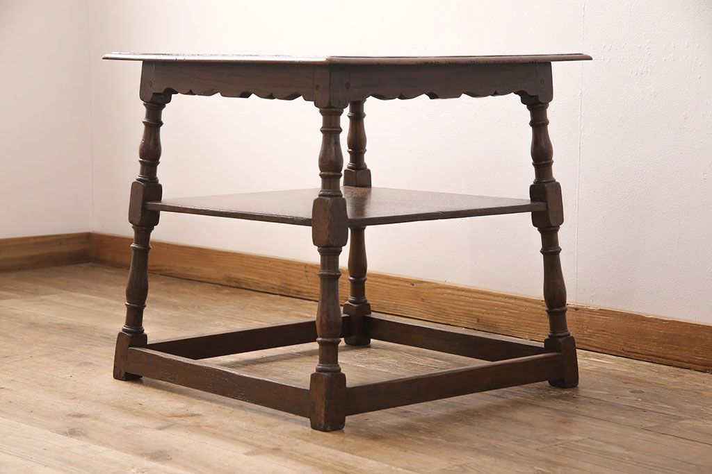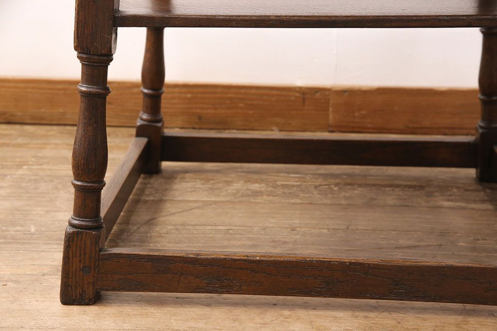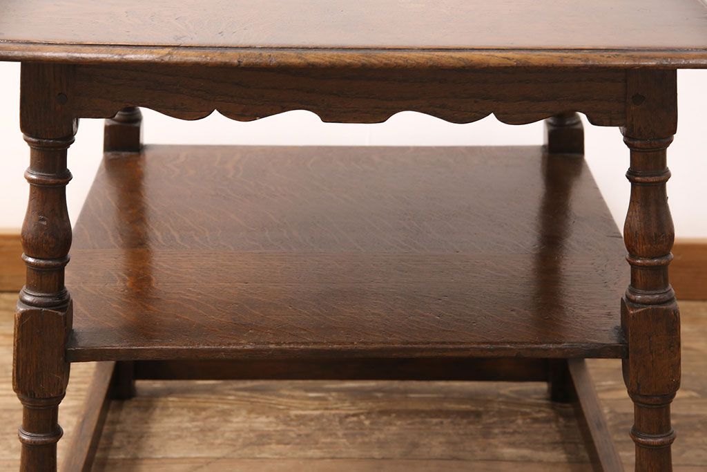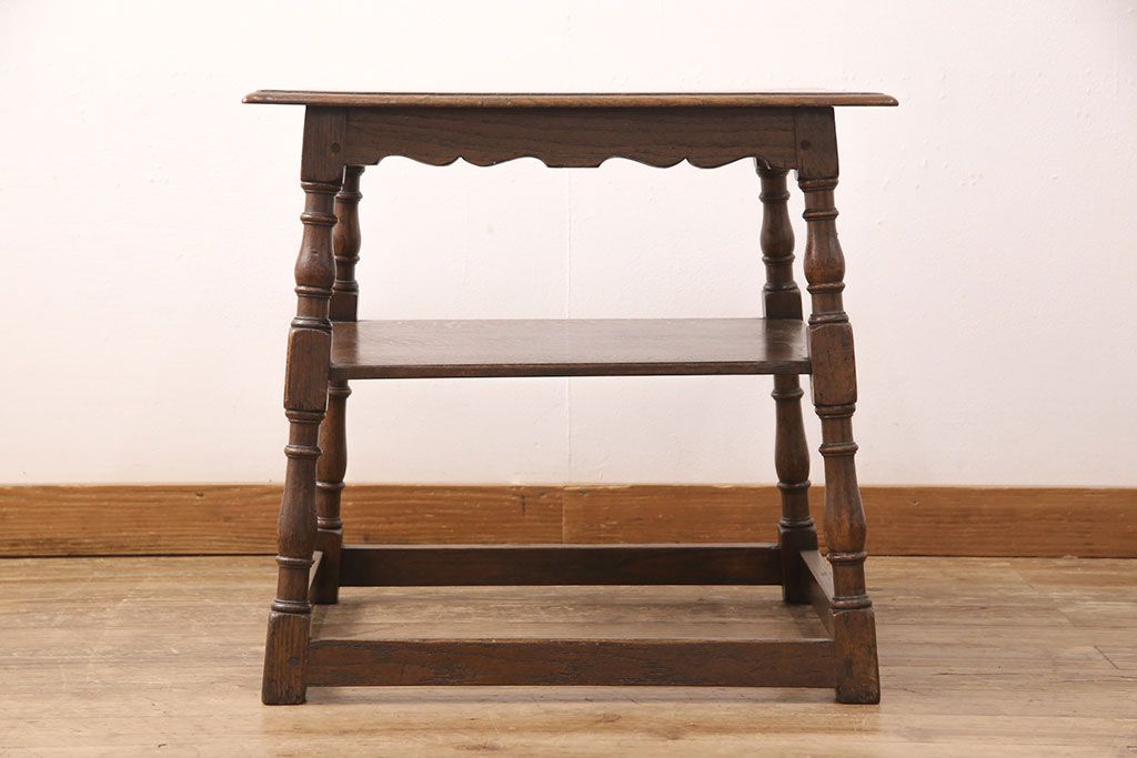 イギリスアンティーク オーク材 珍しいデザインが特徴的なサイドテーブル(飾り台、ナイトテーブル)(R-052687)