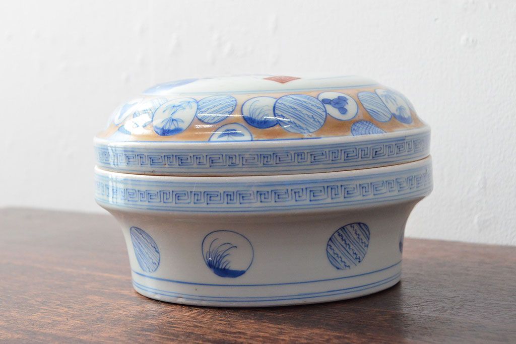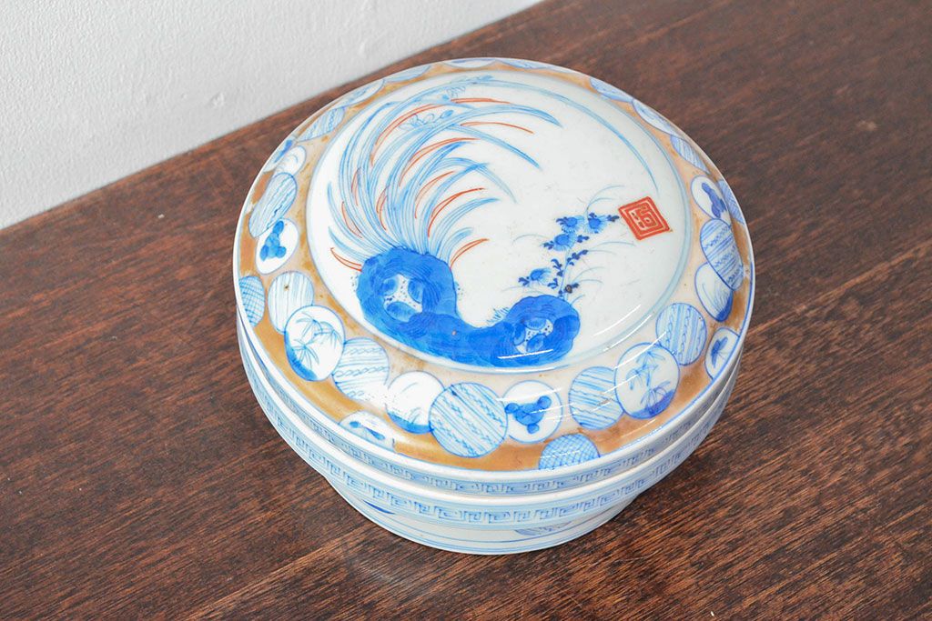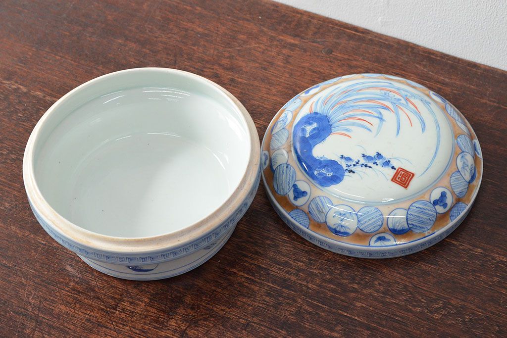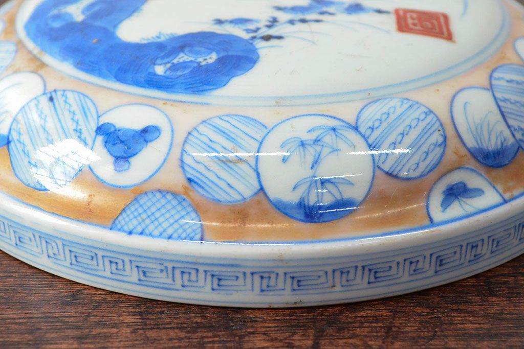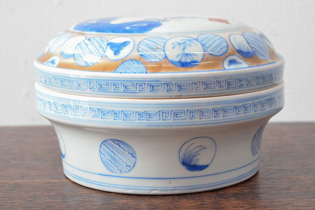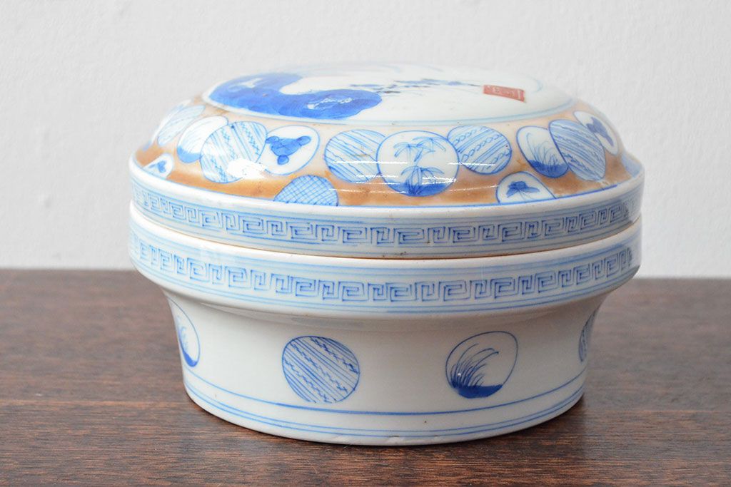 ラフジュ工房> 和食器・茶道具 > 江戸後期〜幕末 色絵染付 蓋物(深鉢、深皿、和食器)(R-052313)