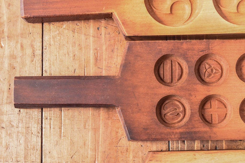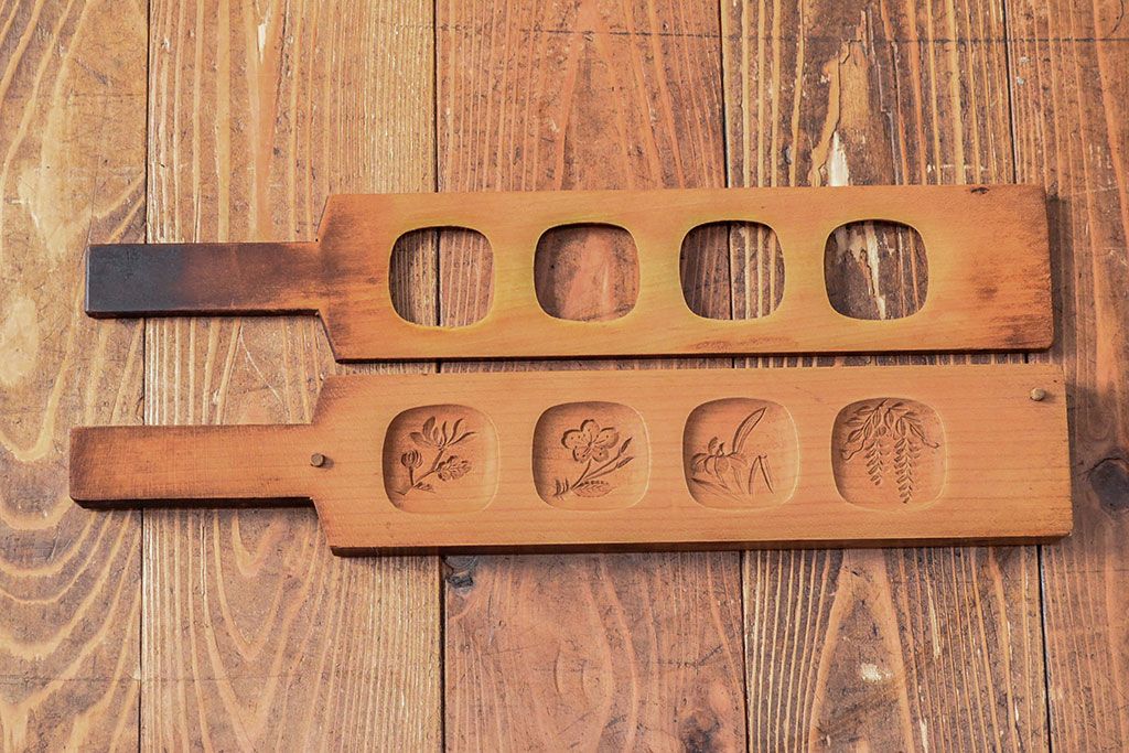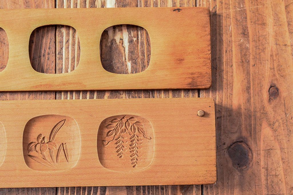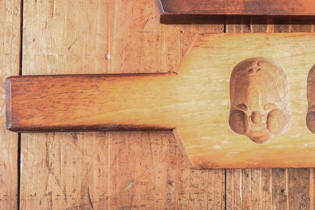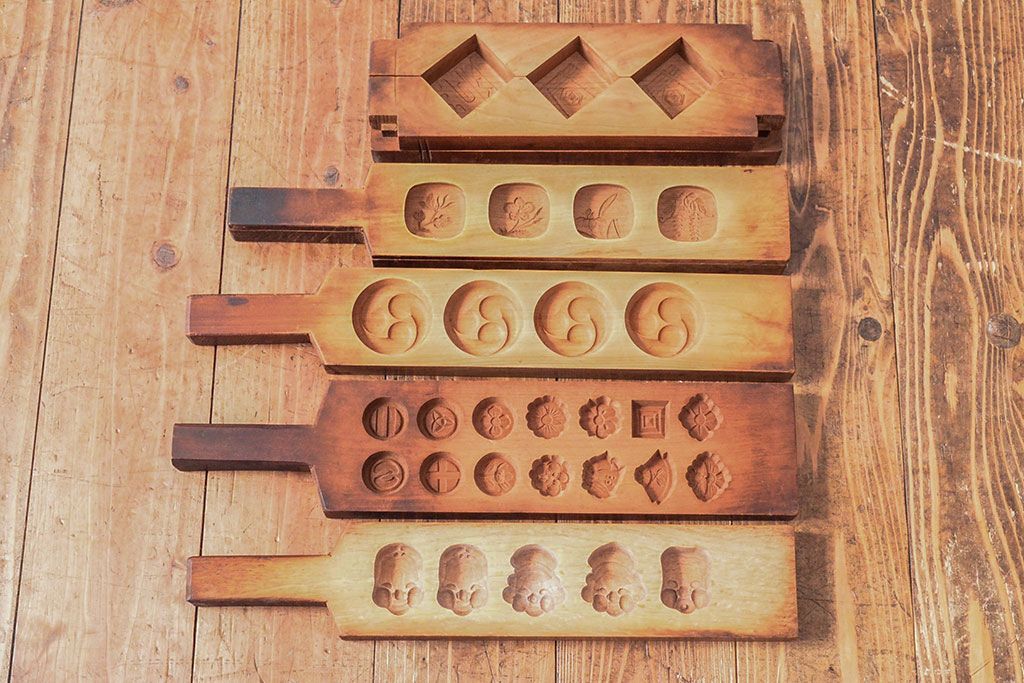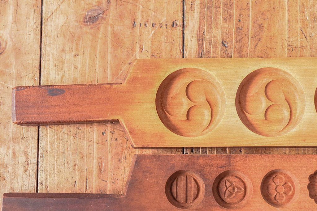 昭和レトロ 古い菓子型5点(キッコーマン、おかめ、大黒、三つ巴)(R-052323)