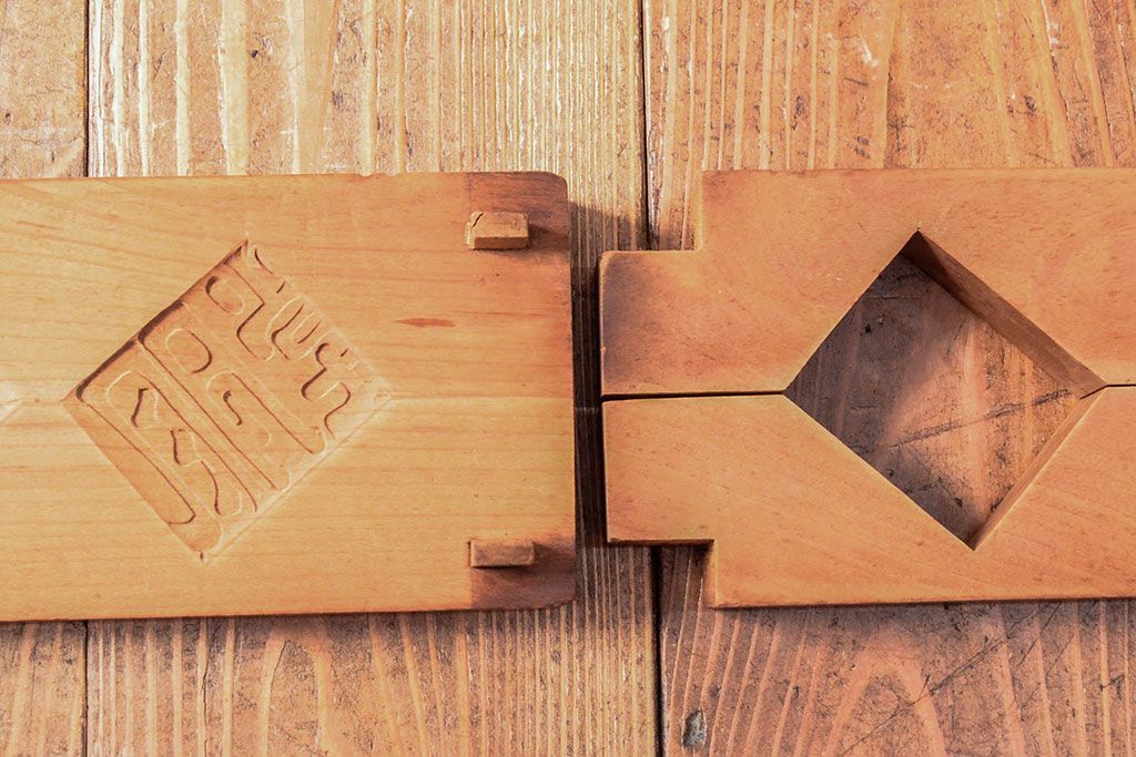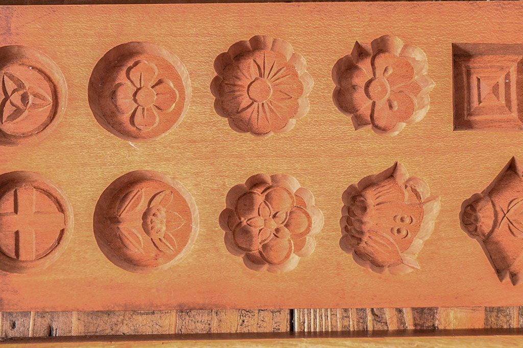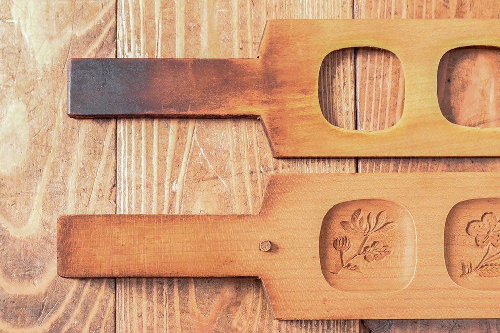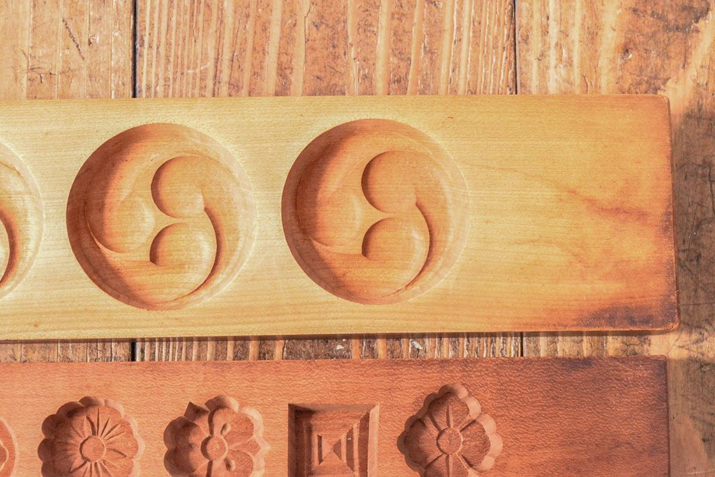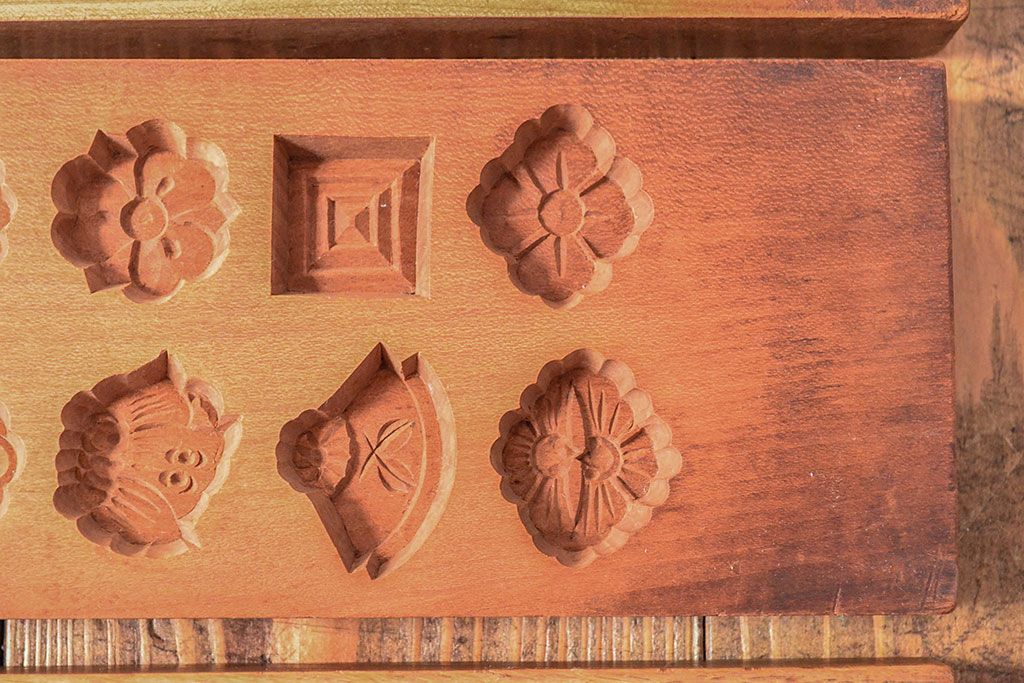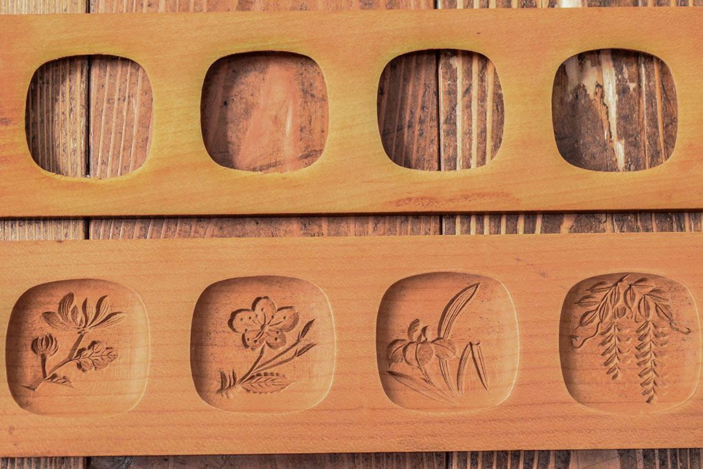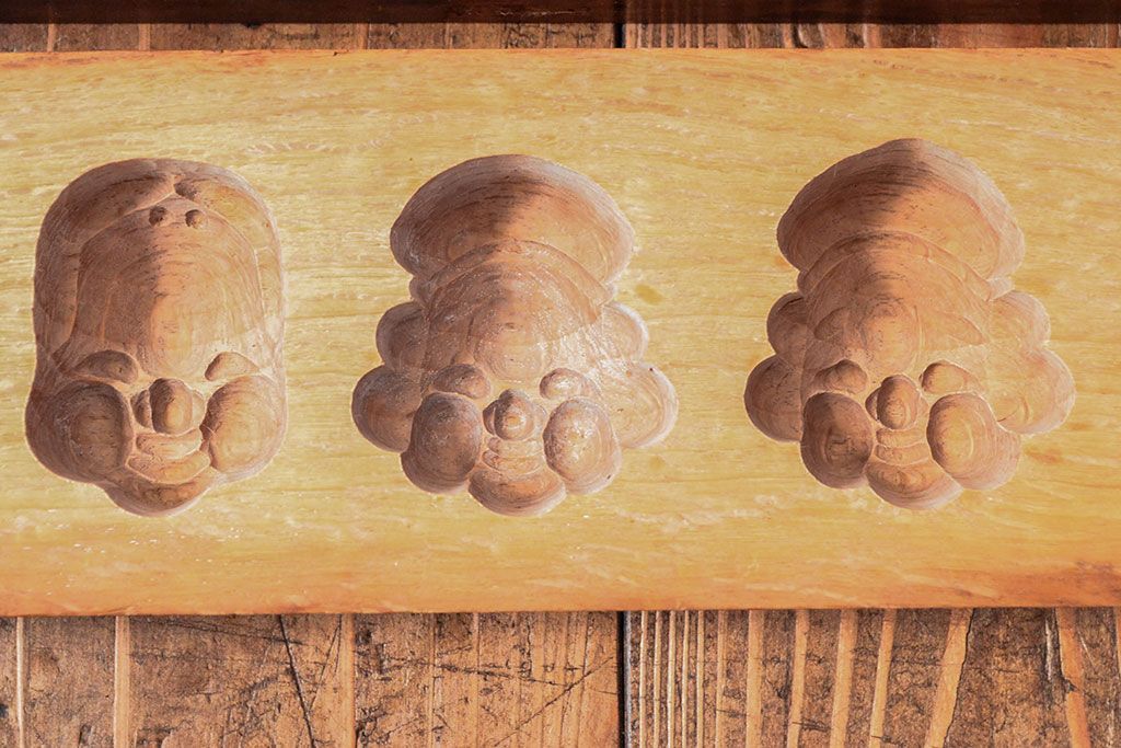 昭和レトロ 古い菓子型5点(キッコーマン、おかめ、大黒、三つ巴)(R-052323)