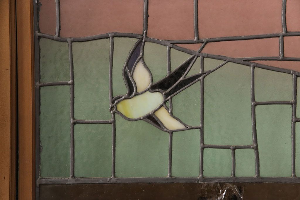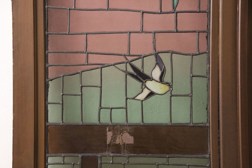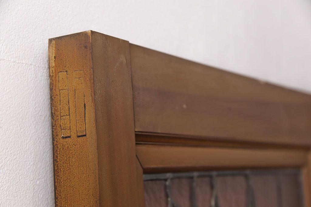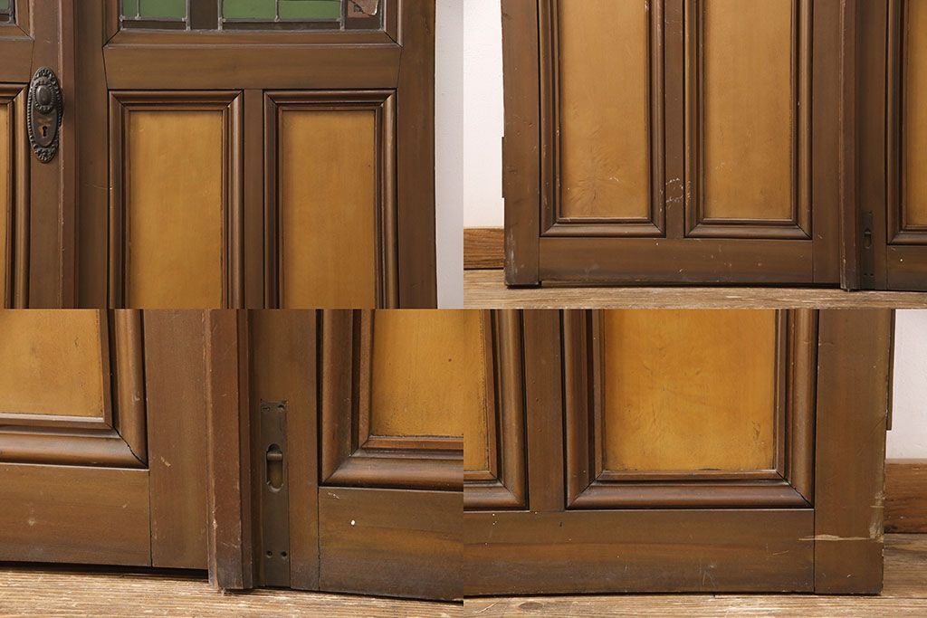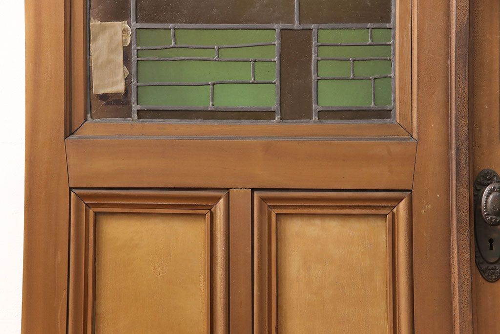 ドア・建具> ドア・扉 > アンティーク建具 国産 ノスタルジックな雰囲気漂うステンドグラス入り両開きドア(玄関ドア、ガラス戸、ガラス扉)(R-051888)