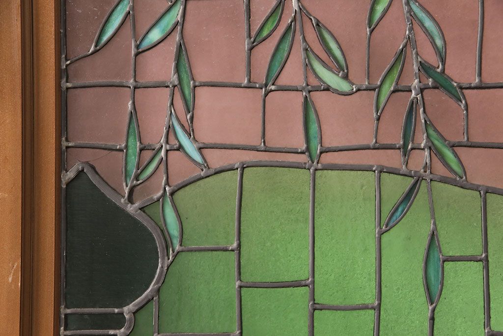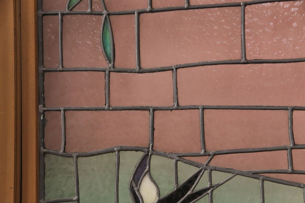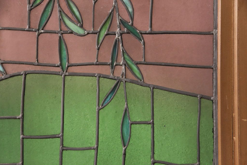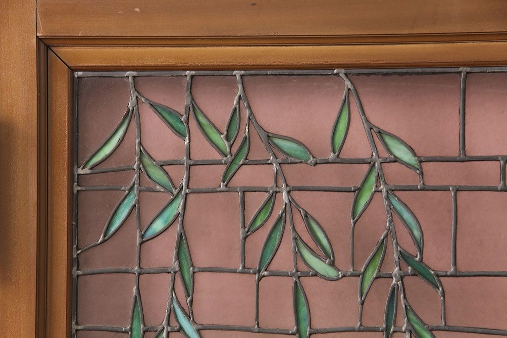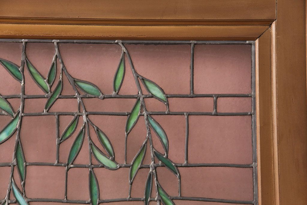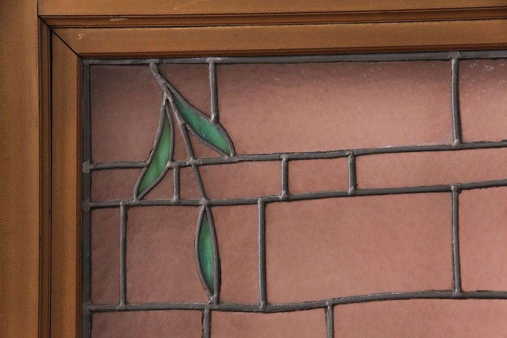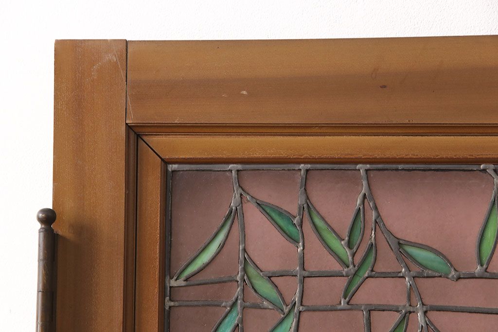 ドア・建具> ガラス戸 > アンティーク建具 国産 ノスタルジックな雰囲気漂うステンドグラス入り両開きドア(玄関ドア、ガラス戸、ガラス扉)(R-051888)
