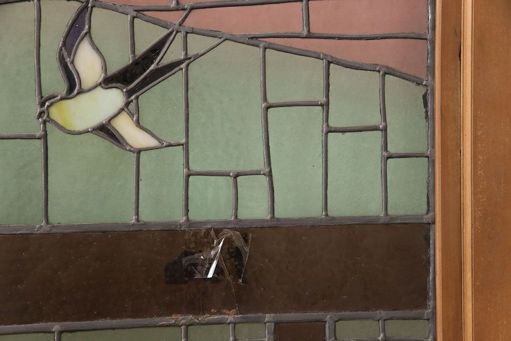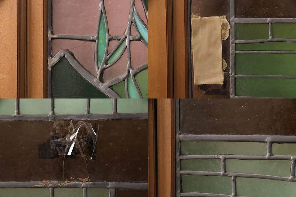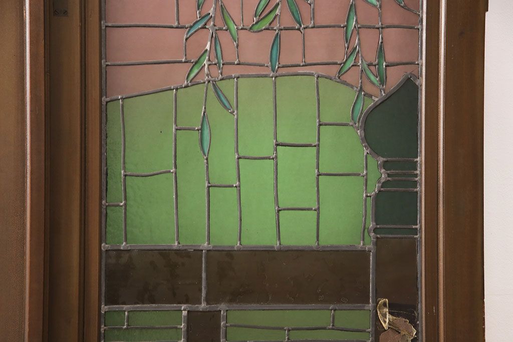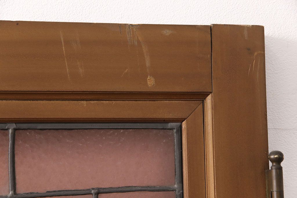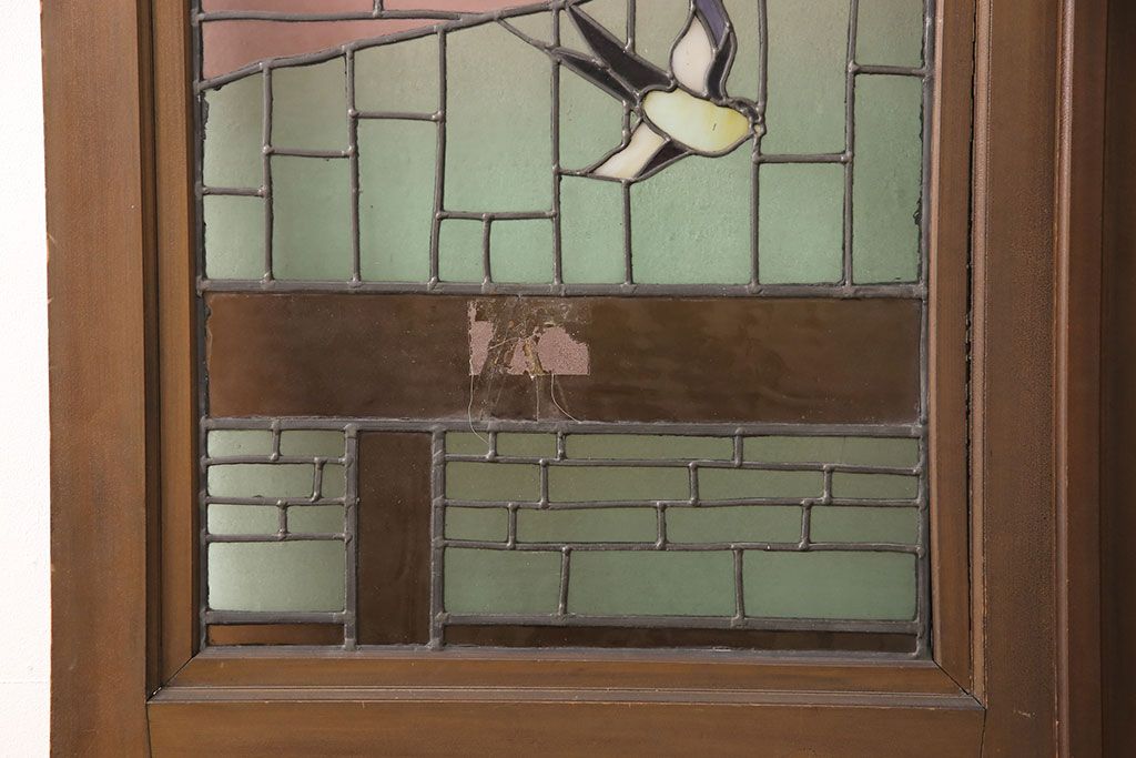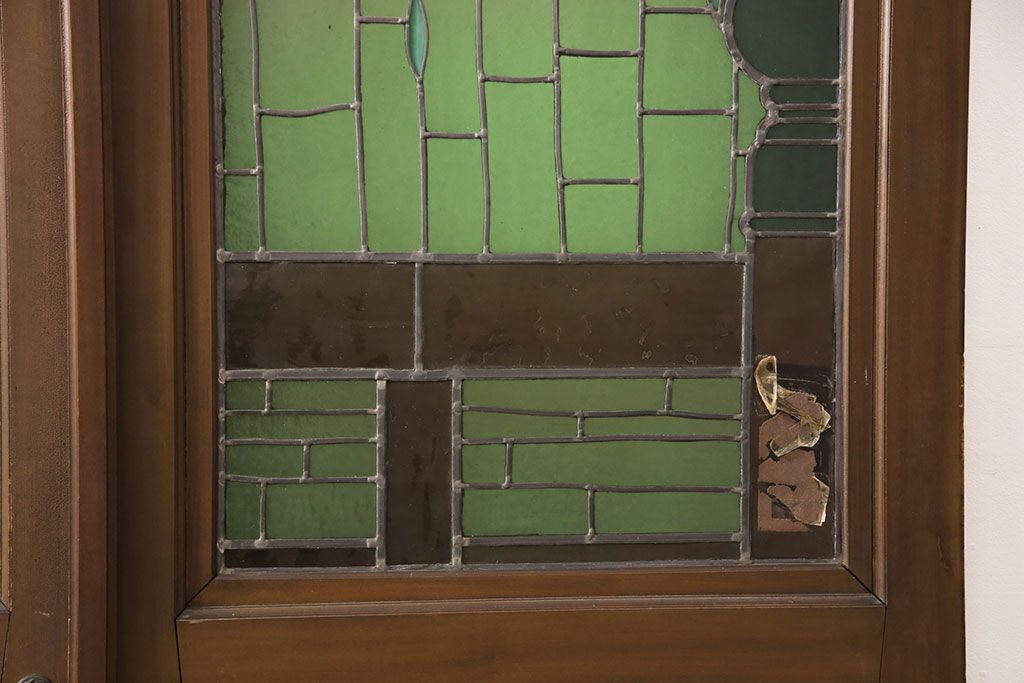 状態が気になる方には現状販売はおすすめできませんので、慎重なご検討をお願いいたします。アンティーク建具 国産 ノスタルジックな雰囲気漂うステンドグラス入り両開きドア(玄関ドア、ガラス戸、ガラス扉)(R-051888)です。