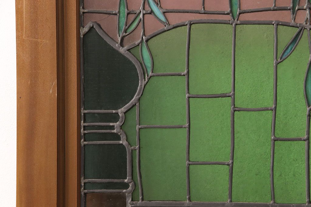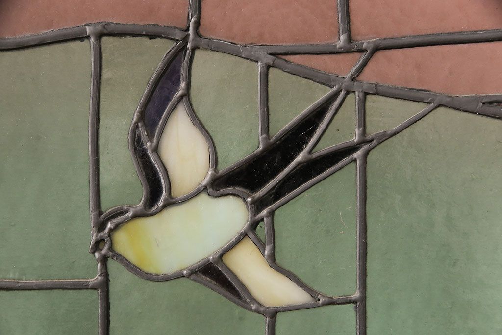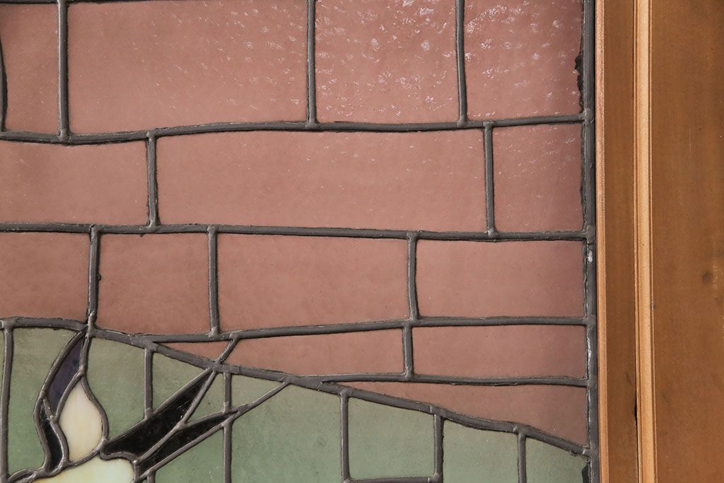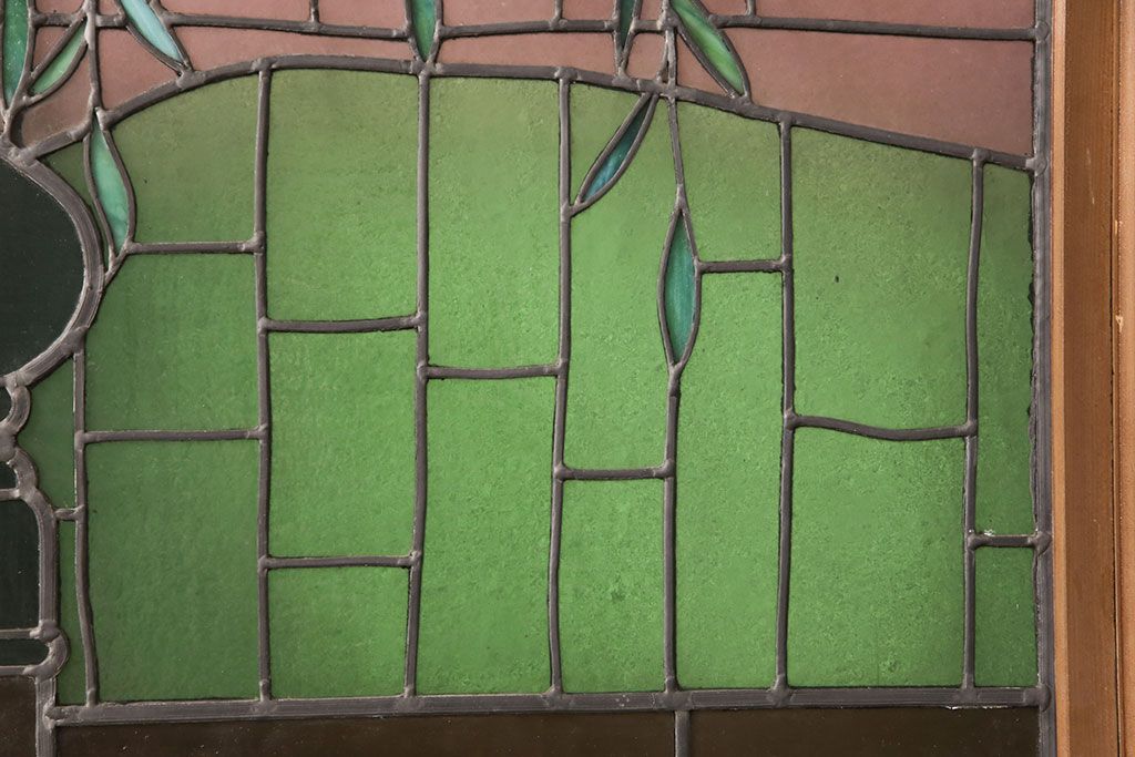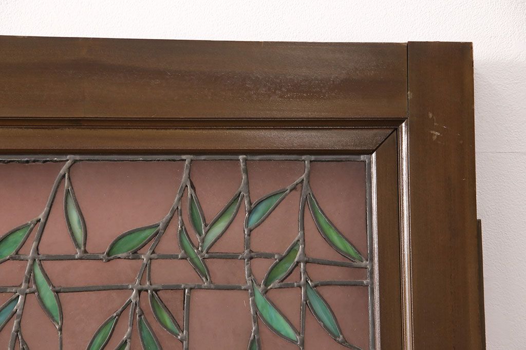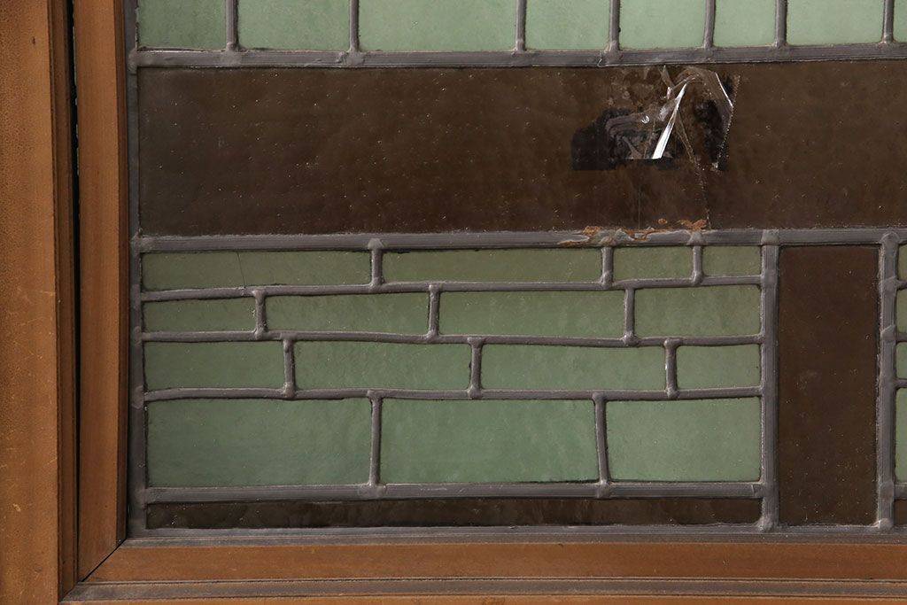 状態が気になる方には現状販売はおすすめできませんので、慎重なご検討をお願いいたします。アンティーク建具 国産 ノスタルジックな雰囲気漂うステンドグラス入り両開きドア(玄関ドア、ガラス戸、ガラス扉)(R-051888)です。